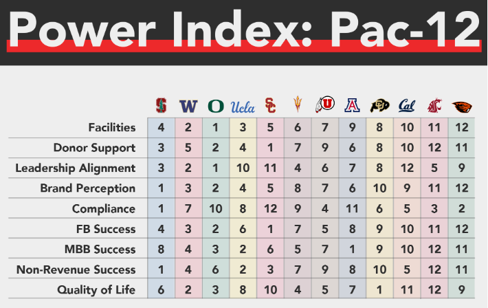 But other rankings are more head-scratching. Does Cal’s donor support levels and brand perception really lag behind Arizona, ASU, and Utah? Is Cal really behind Arizona and Colorado in a ranking of potential football success?