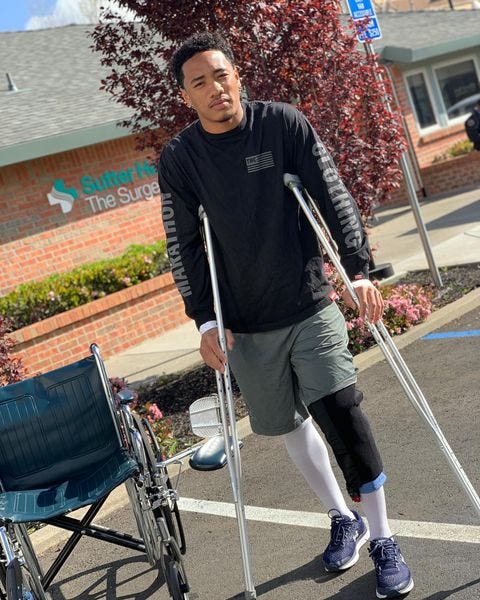 Camryn Bynum posted a picture on Instagram of him in a knee brace on crutches outside of a Sutter medical facility. There’s no definitive statement from Bynum—not even the beloved “lower-body injury” line—but includes language like “[t]emporarily losing” football. Let’s hope this is nothing more than a minor setback for Bynum, who is set to be a key player and a star on the 2020 team.