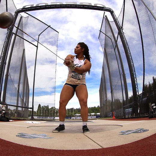 Rogers now own the top-11 collegiate women's hammer throws in history