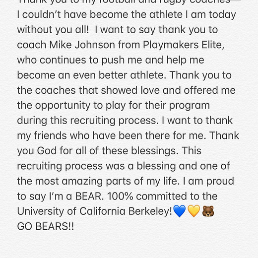 But, look, he's a high school kid who's growing into a new height and the strength, weight, and coordination has yet to catch up. A big old baby giraffe who's physically well behind the rest of his recruiting class to Cal. But speed, strength, hands, route running, and athleticism will perhaps develop later given how much energy his body has put into growing taller.