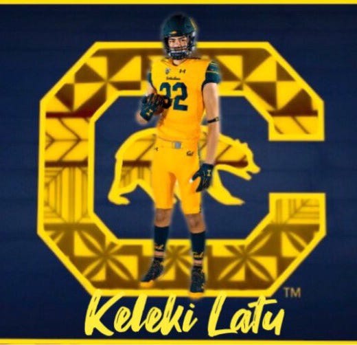 Keleki Latu, a 6-6, 205 lb tight end from Carmichael, California, has committed to the California Golden Bears. Latu committed to the Bears over offers from USC, Oregon, Utah, Arizona State, and Nebraska.
