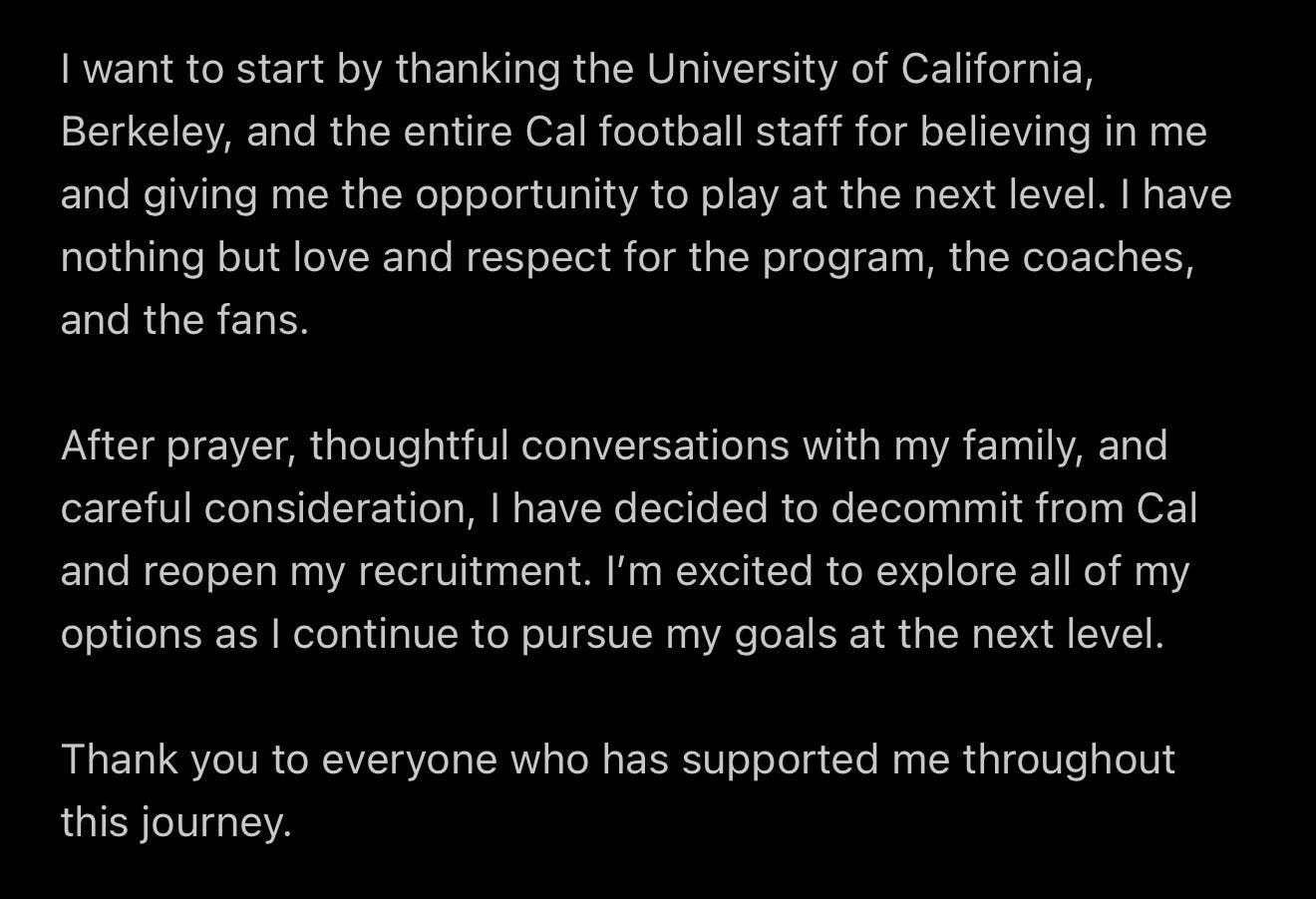 Jayden Crowder - CB - 3/5-Star (86 OVR) - Santa Margarita Catholic (Rancho Santa Margarita, CA) – Jayden Crowder announced on X that he had decommitted from the University of California, and has since committed to USC.