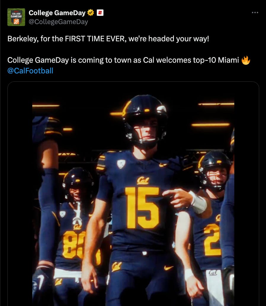 After another banner week for Cal Twitter and the #Calgorithm, your California Golden Bears will host for the first time ESPN’s College GameDay this Saturday, October 5th before taking on the Miami Hurricanes in an ACC After Dark match up.
