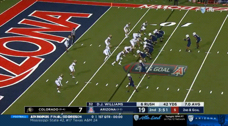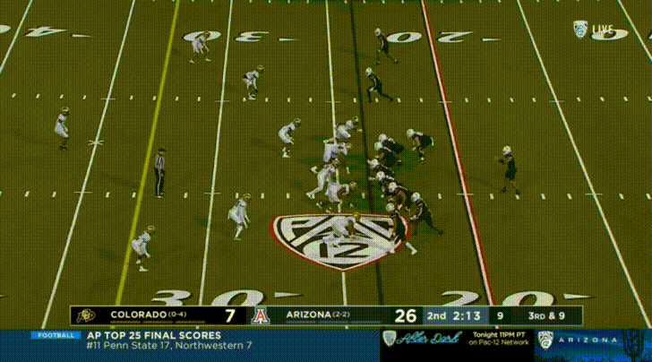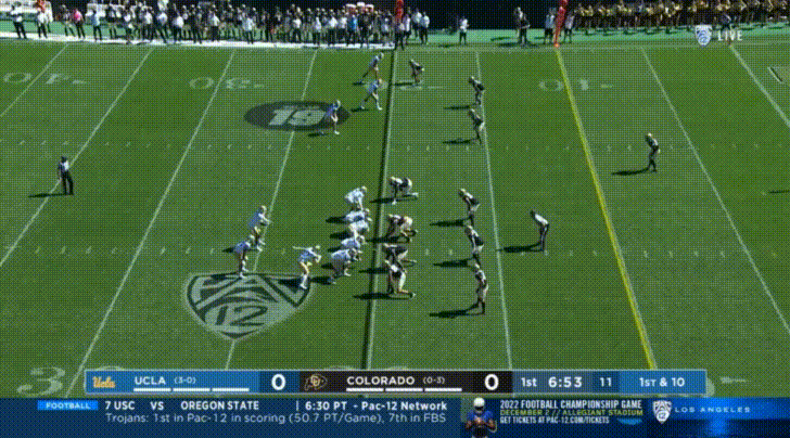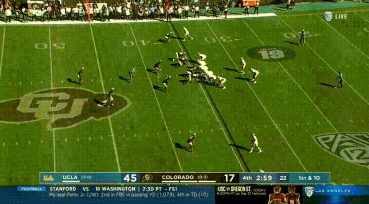 If you asked me before the season to name Colorado’s defensive line, the one name I would have got correct would be the defensive end Terrance Lang. There’s no highlights of him here, because he’s been a ghost so far this season. Per PFF, in 202 snaps so far this season, he has 2 QB hurries and 13 tackles (and 3 missed tackles). I’d post a highlight if I could, but I don’t have any.