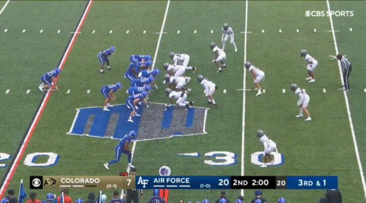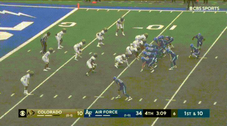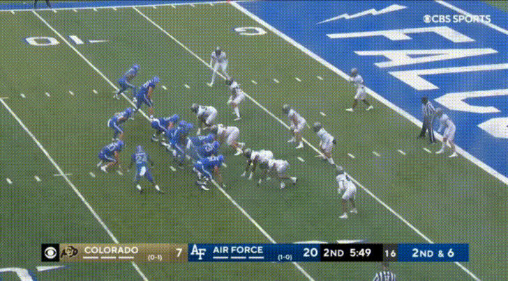I mentioned earlier Colorado’s struggles to beat blocks. Well, check out this block from Air Force’s 5’7” 190 lbs. wide receiver to seal the edge: