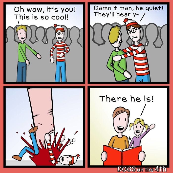 I wondered why Wally's American cousin was Waldo... https://www.reddit.com/r/NoStupidQuestions/comments/6gyz92/why_is_wheres_wally_called_wheres_waldo_in_america/