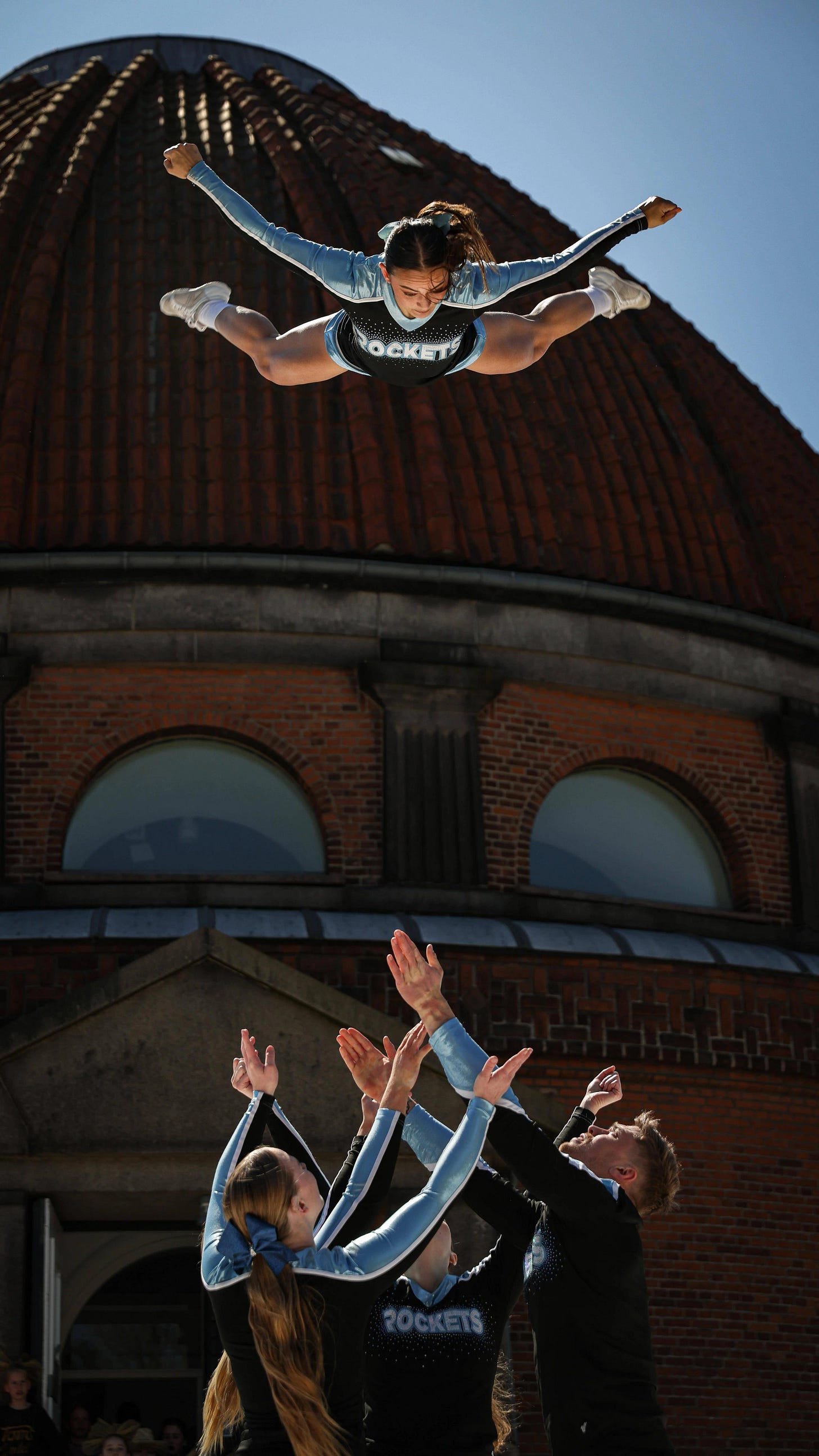 One reply - cheer girls from Tennessee were getting thrown up 45 feet in our area, a Cal area!!!, I think Sec II then - that seems so wild to me - how many cheer units they had on an away game? Wow, it was insane.