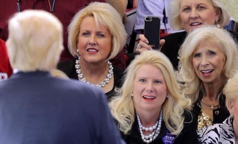 I was thoroughly nauseated looking at the picture. Does that collection of middle aged and older women get backstage passes to be with DJT?