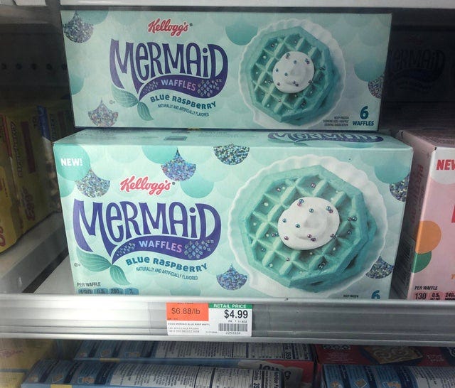 those mermaid waffles remind me of the box of Lucky Charms, without the cereal in it (just the marshmallows). I got it as a graduation gag gift, and they loved it!