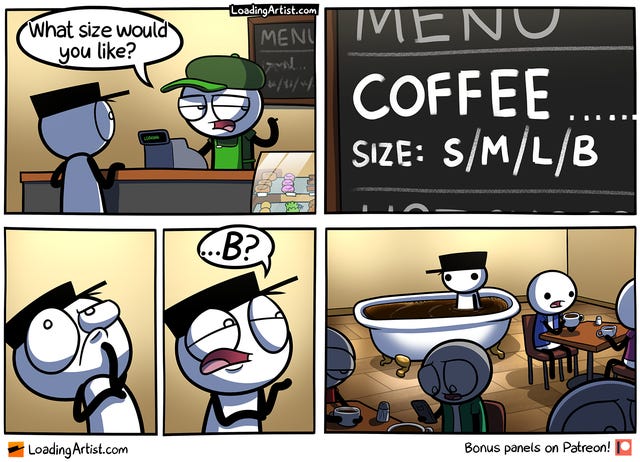 Sometimes specialty coffee, to avoid ingesting too many calories. I'm not a Venti Frapuccino type of person.