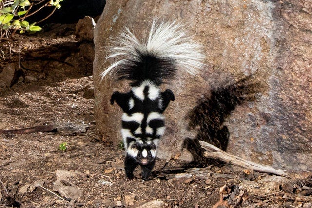 It's just a picture of a skunk doing a handstand and then me wondering if all skunks do that or if it is just spotted skunks and then me going down the Wikipedia hole to find out that skunks spray different stuff.