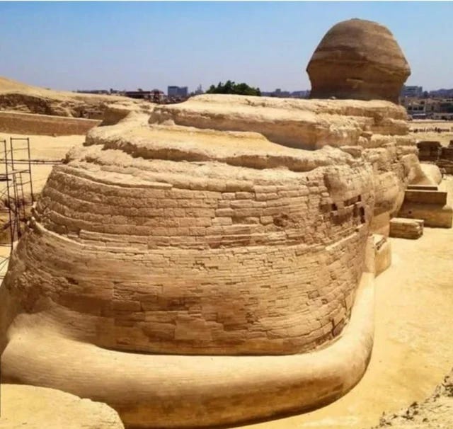 The Great Sphynx of Giza was buried up to its neck in sand. You can see in an 1849 photo how it was just started being dug out. They continuously excavated, only finding out in the late 1920s that the Sphynx actually has a tail. The Great Sphynx is old… like, we’re closer to time to Cleopatra (born 69 BC) than she was to the building of the Sphynx (25th century BC).