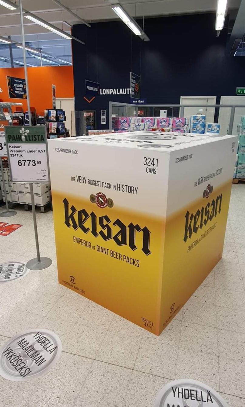 A Finnish brewery (Nokian Panimo, “Nokia Brewery”) launched this 3,241-pack of beer. Their competitor Karjala launched a 100-pack to celebrate Finland’s 100 years of independence, to which the Nokian launched a 1,000-pack. In typical dry Finnish humor, they launched a 3,241 pack. You should notice a few things: