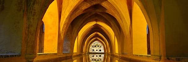 The "Baths of Lady María de Padilla" are rainwater tanks beneath the Patio del Crucero in Sevilla. The tanks are named after María de Padilla, the mistress of Pedro the Cruel. Supposedly, Pedro fell for the lady who walked naked through the palace and bathed in this beautiful stone cistern coated in lime. Legend also has it that Pedro I made all those who visited him drink from the water in which Doña María bathed. I mean, who among us…