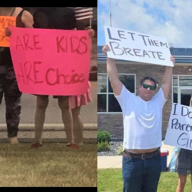 a lot of "UNMASK OUR KIDS" in my town, which is pretty disappointing. I don't think the kids care; it's really just adults complaining (many of whom don't have kids)