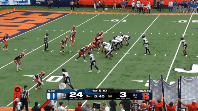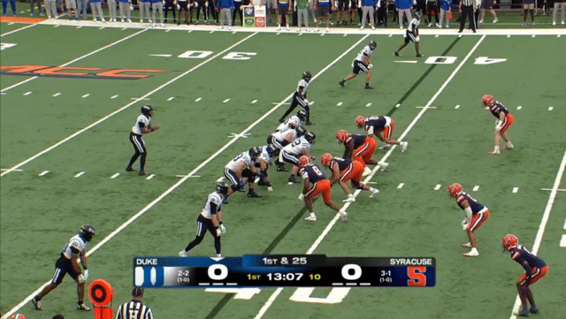Duke runs the ball well and does a good job of distributing the ball to its receivers in space, running an efficient offense. Mensah reminds me of last week’s quarterback, Boston College’s Dylan Lonergan, where they’ll find open receivers and perhaps put up 300 passing yards per game, but there isn’t a point where I was just blown away thinking “that was an NFL throw right there.” (Well, I was thinking that over and over last week, but not about BC’s QB).