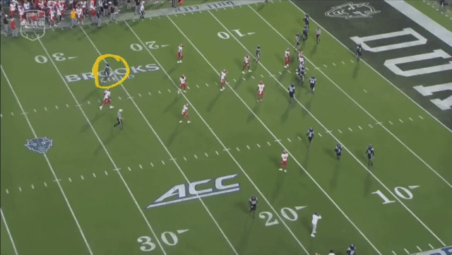 Duke also has some talented receivers. Mensah’s favorite target is the Harvard transfer, Cooper Barkate. Barkate, as the Z-receiver, will often be found all over the field. He does a good job of both gaining separation and finding open space: