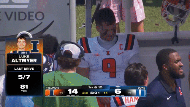 My read on Duke is that they’re a talented team that just hasn’t played as well as the sum of their parts. A lot of their issues are fixable, like poor tackling, penalties, or special teams miscues. Against Tulane: two false starts to push their FG back out of range, a fumbled hold on another FG try, a blocked FG, roughing the kicker on a punt to give a free first down, etc. Against Illinois: a muffed punt, having two #8s on the field for a punt return which gave Illinois the first down and led to an Illinois TD, 5 turnovers, and so on. The Syracuse game last week was more about Syracuse not looking too great with their starting QB injured, but the NC State win was impressive, turning a 21-20 game at halftime into a 45-33 win (24-13 Duke in the second half, when they played relatively mistake-free).