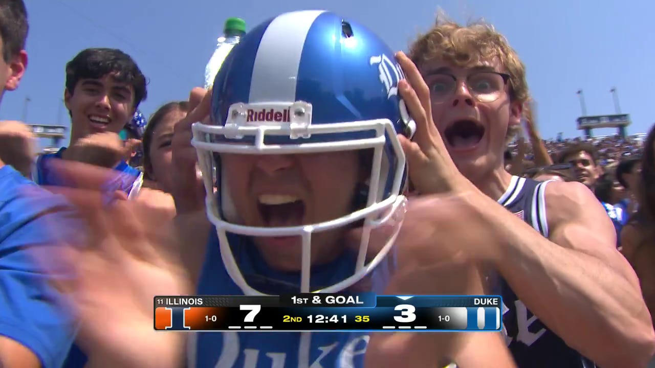 With all the hype around Darian Mensah coming into the season, Duke’s run game has been an unexpected surprise. True freshman RB Nate Sheppard has recently, particularly after putting up 168 rushing yards on 15 carries against Syracuse (11.2 yards/carry), and he’s averaging 8.1 yards/carry on the season. Sheppard already looks like a future star.
