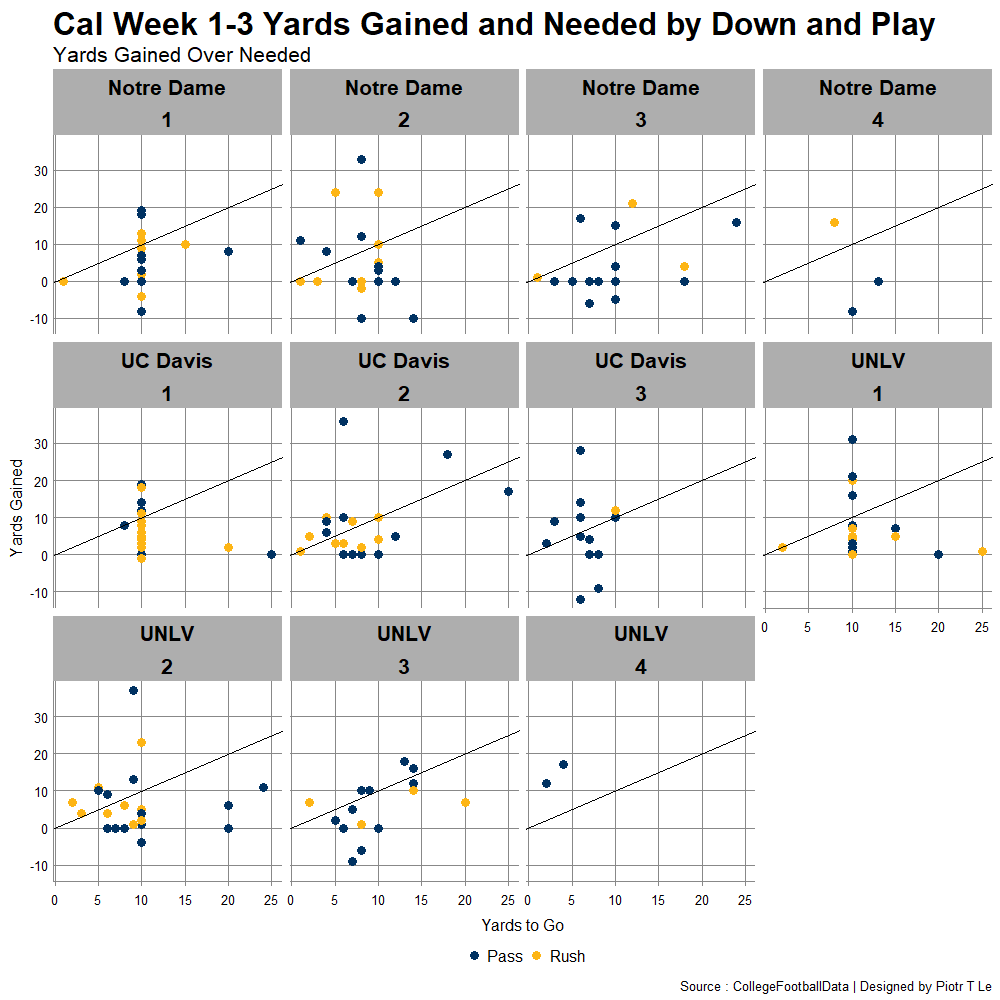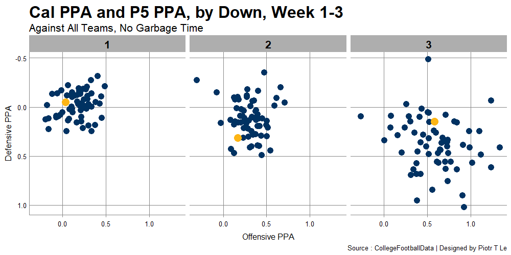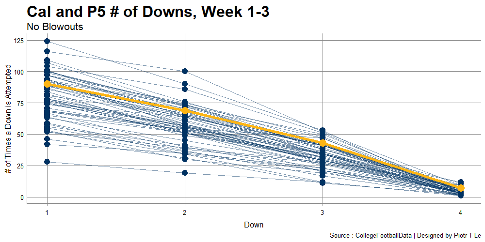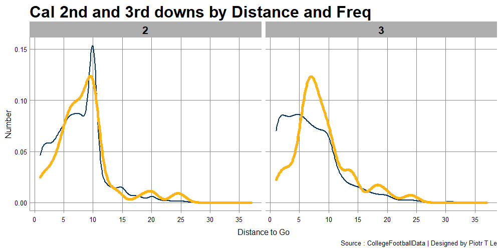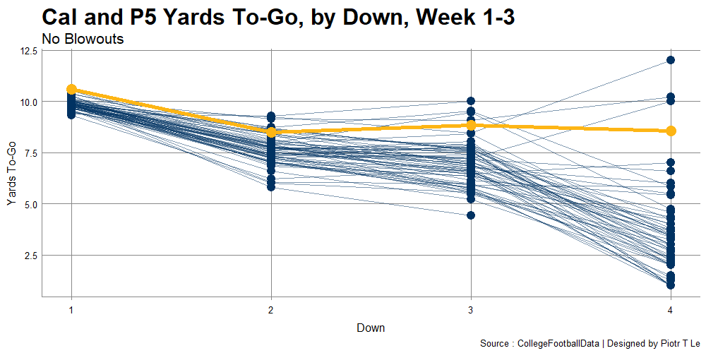 Cal also in the top of the P5 in the amount of 2nd and 3rd downs in the country. So we’re not just getting long 2nd/3rd downs but we’re getting them really often. Just like last year the offense just feels labrorious. Just every drive feels like a challenge for the team to do. And this isn’t just a function of a handful of long 3rd downs.