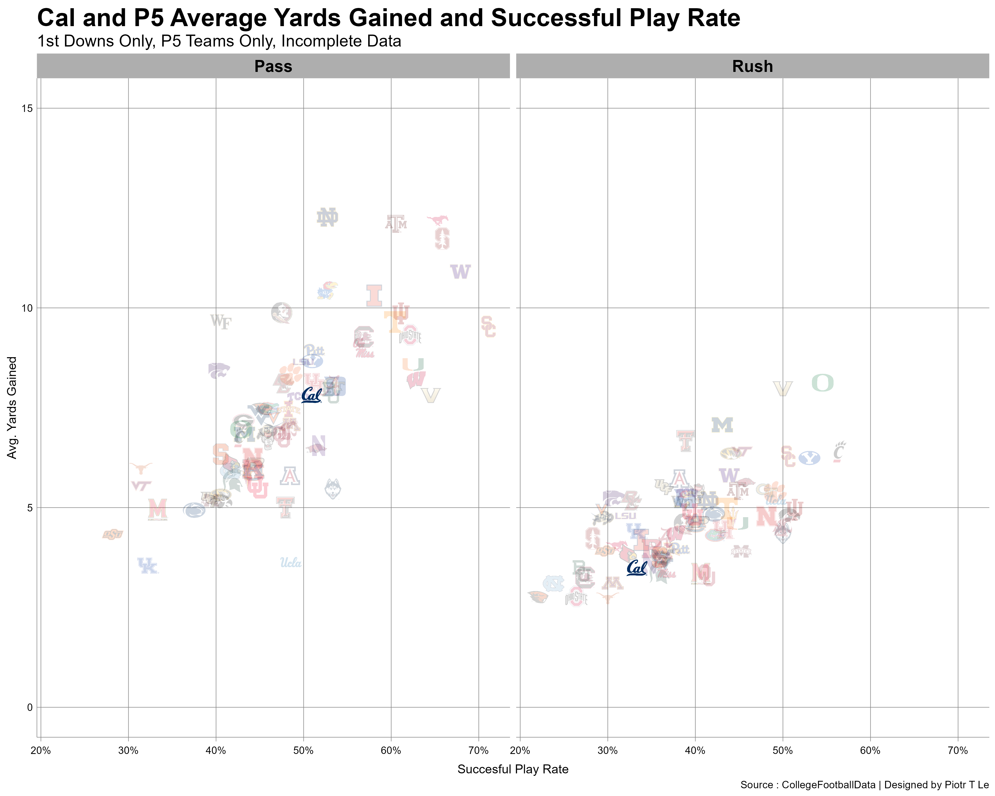 One should not have to rely on a true freshman QB’s arm with mediocre skill players for 1st down production. The lack of at least some semblance of production on the ground is troubling. Not only is the running game inefficient, the low average yards gained indicates a lack of boom in the pike of busts…
