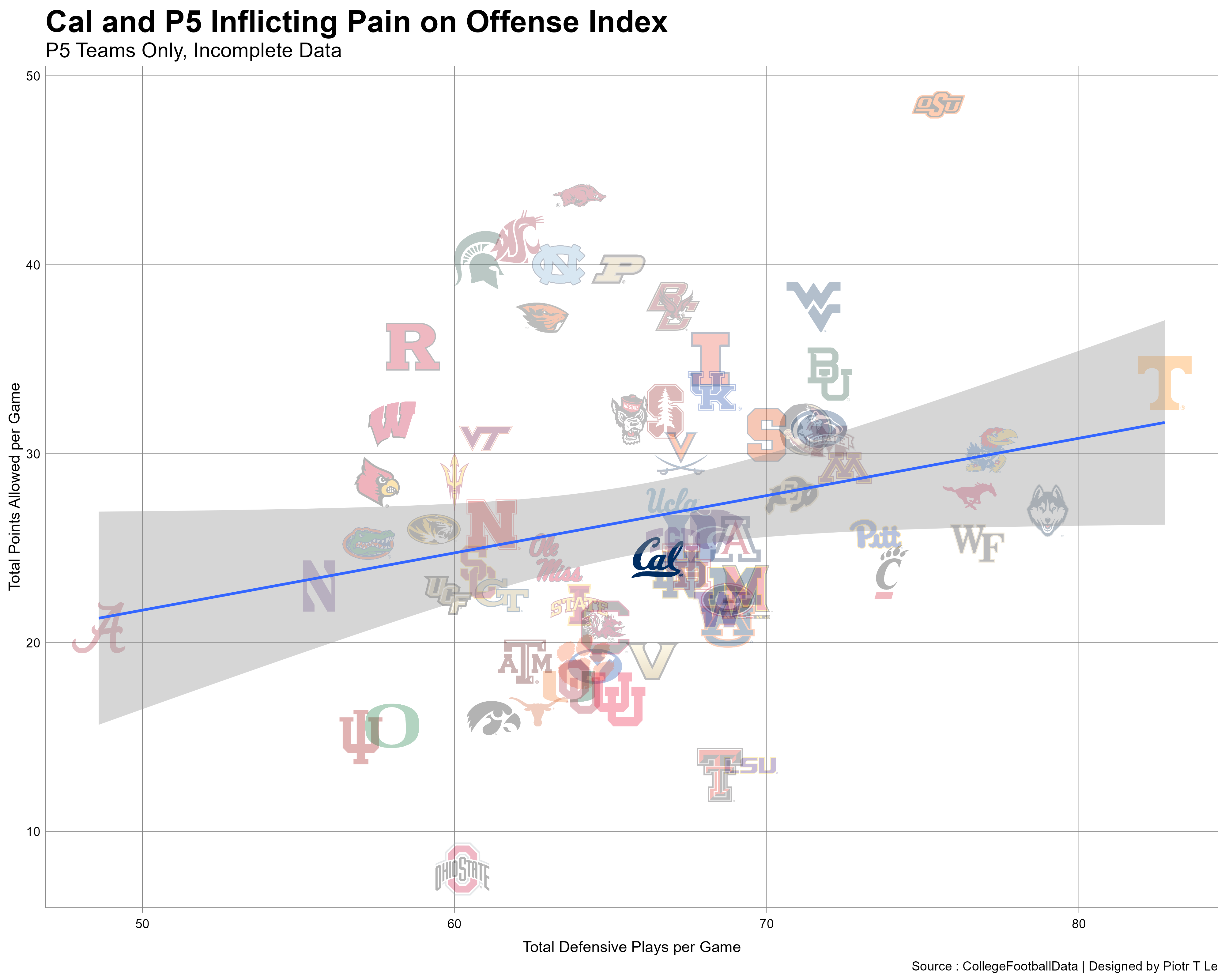 What was shocking was how relatively volatile the rushing defense is. Having Wazzu, OkState and UNC as neighbors defensively is a bad thing, regardless of where OU and Alabama are. I think it has to do with the defensive line and LBs getting either worn down by the end of the game, and poor run integrity leading to massive busts in run integrity due to the issues we have with Cade missing more tackles than ever and Luke Ferelli right behind him.