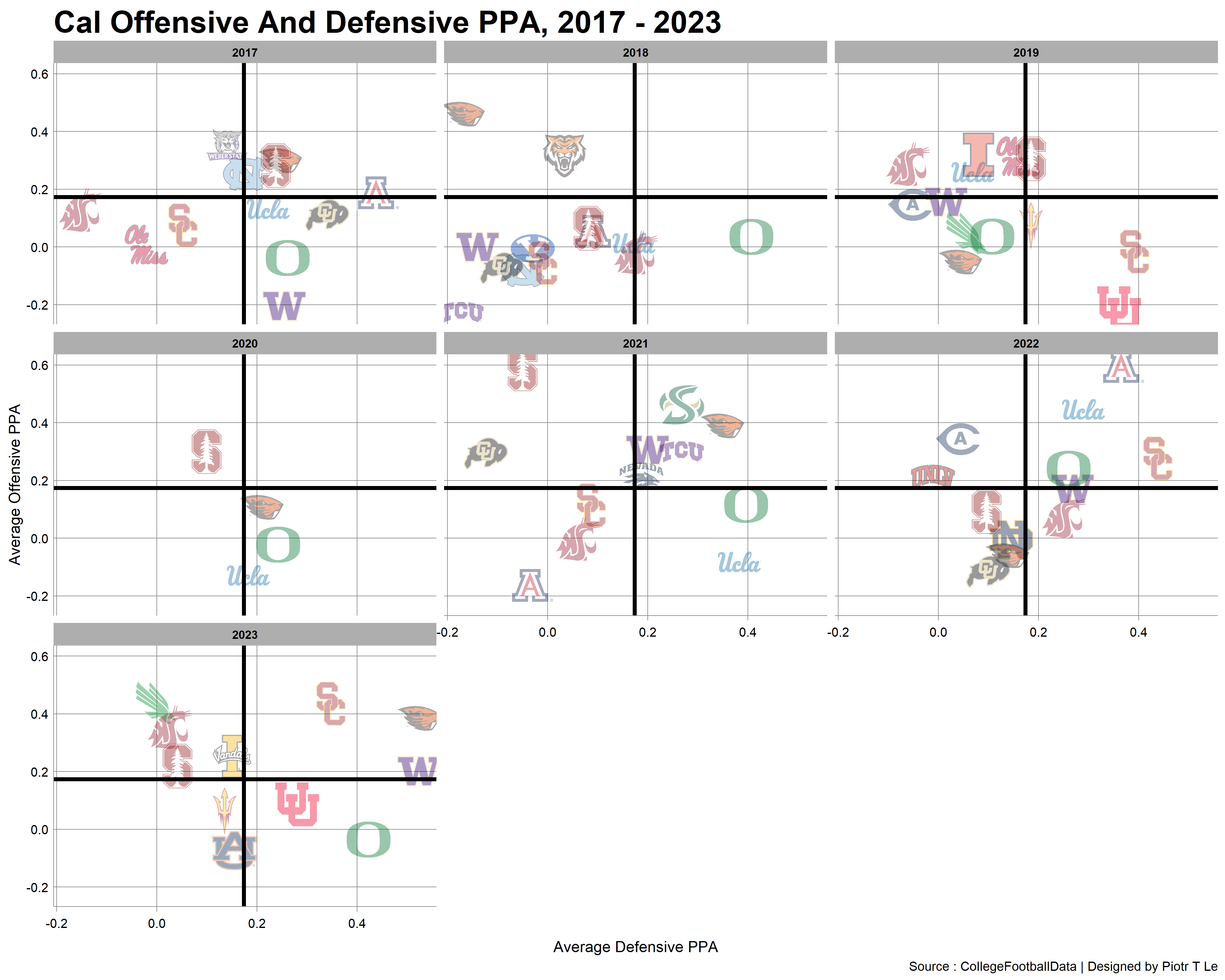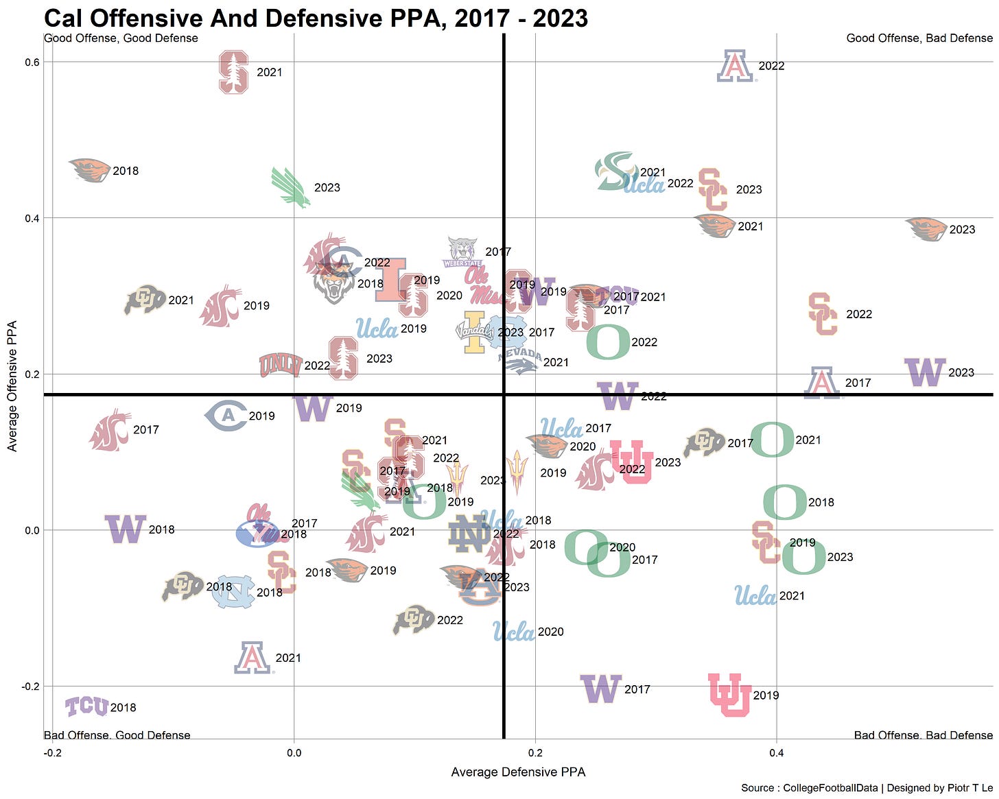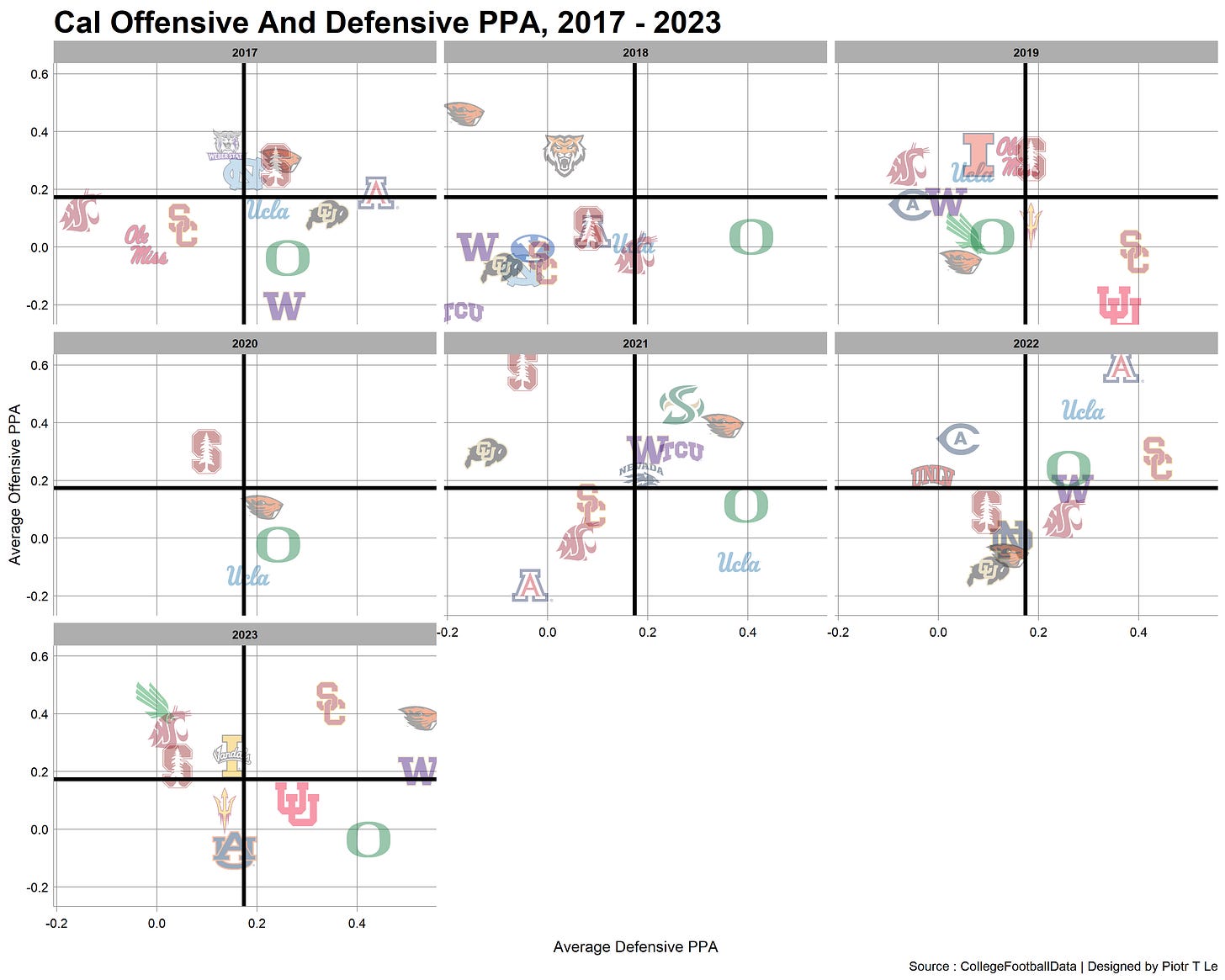 On a year by year basis Stanford has not been able to really stop the Cal with 2018 being the first good defensive game and us staying roughly in that area. Truly embodying the Stanford ethos of uplifting grades.