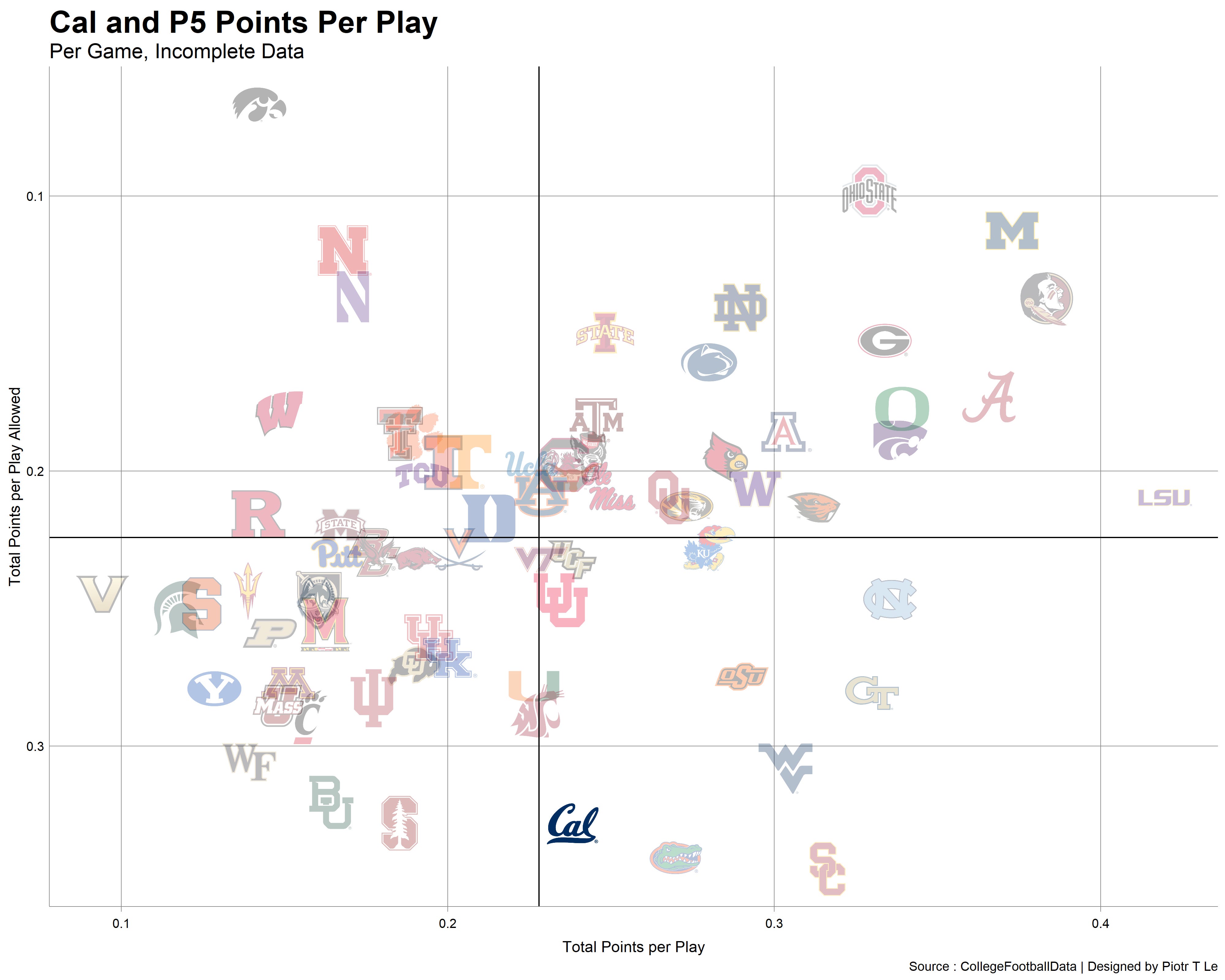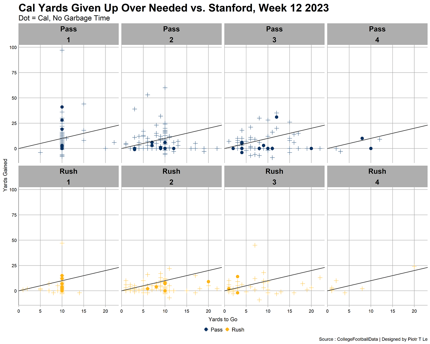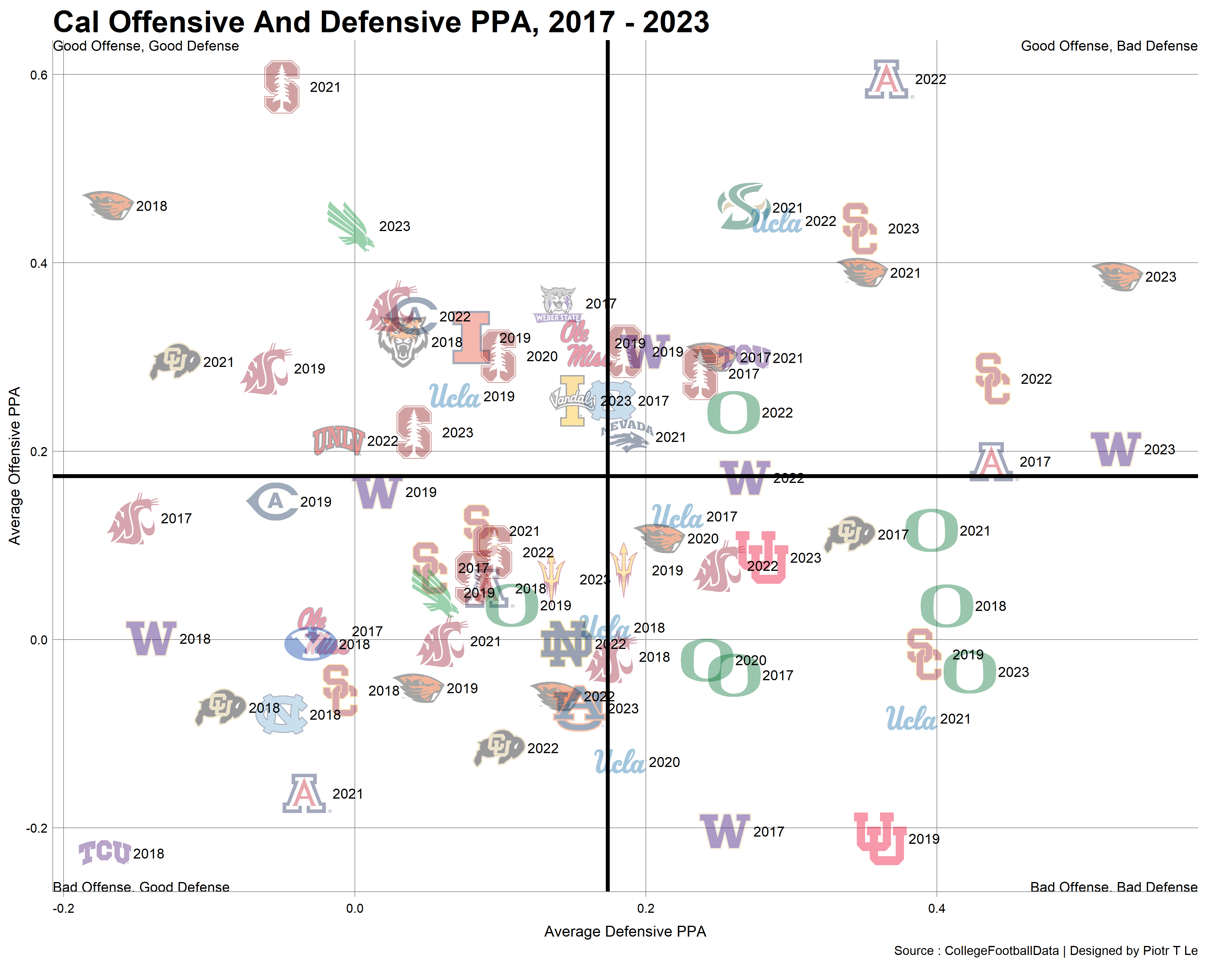On a year by year basis Stanford has not been able to really stop the Cal with 2018 being the first good defensive game and us staying roughly in that area. Truly embodying the Stanford ethos of uplifting grades.