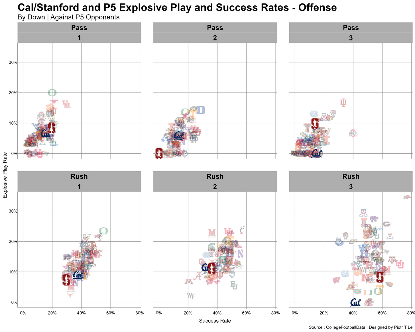 For Cal: we need to pass the ball, Stanford is much worse in the passing defense especially on 3rd down and 1st down. We might see a stronger shift towards a passing game, hopefully some more movement on early downs to go against our tendencies and put Stanford out of script.
