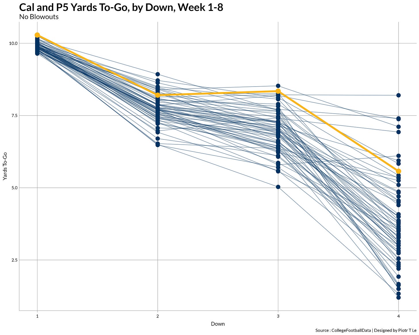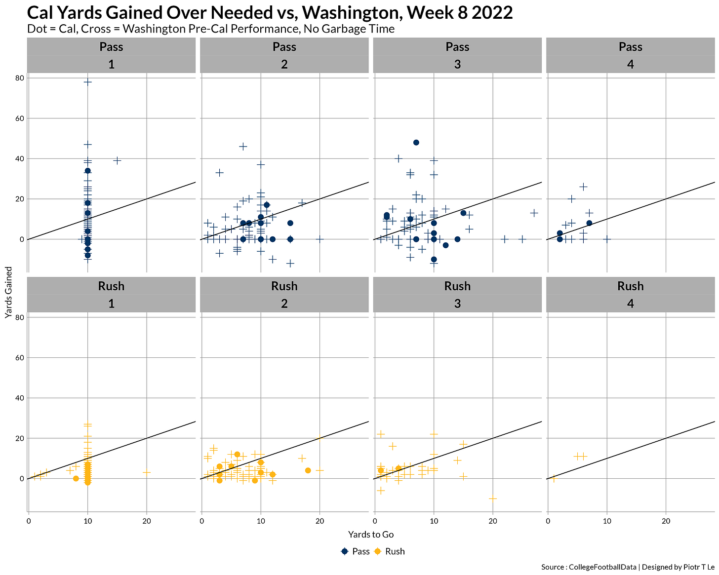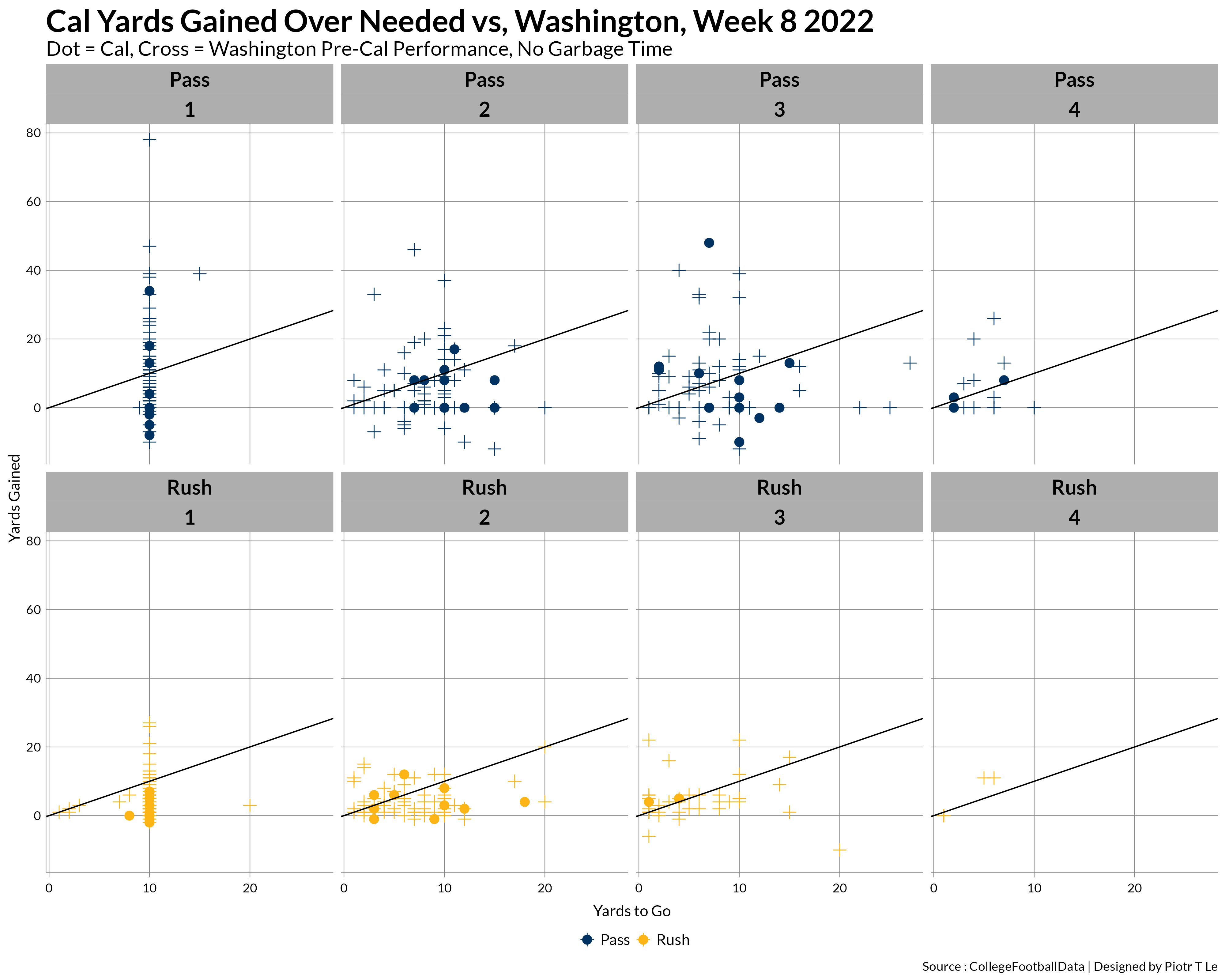 Cal has a 0 EPA on 1st downs… And then are below average on 2nd down and then have to go hard for 3rd down. The defense on the other hand is doing yeoman’s work on early downs but 3rd down defense remains a lot to be desired.