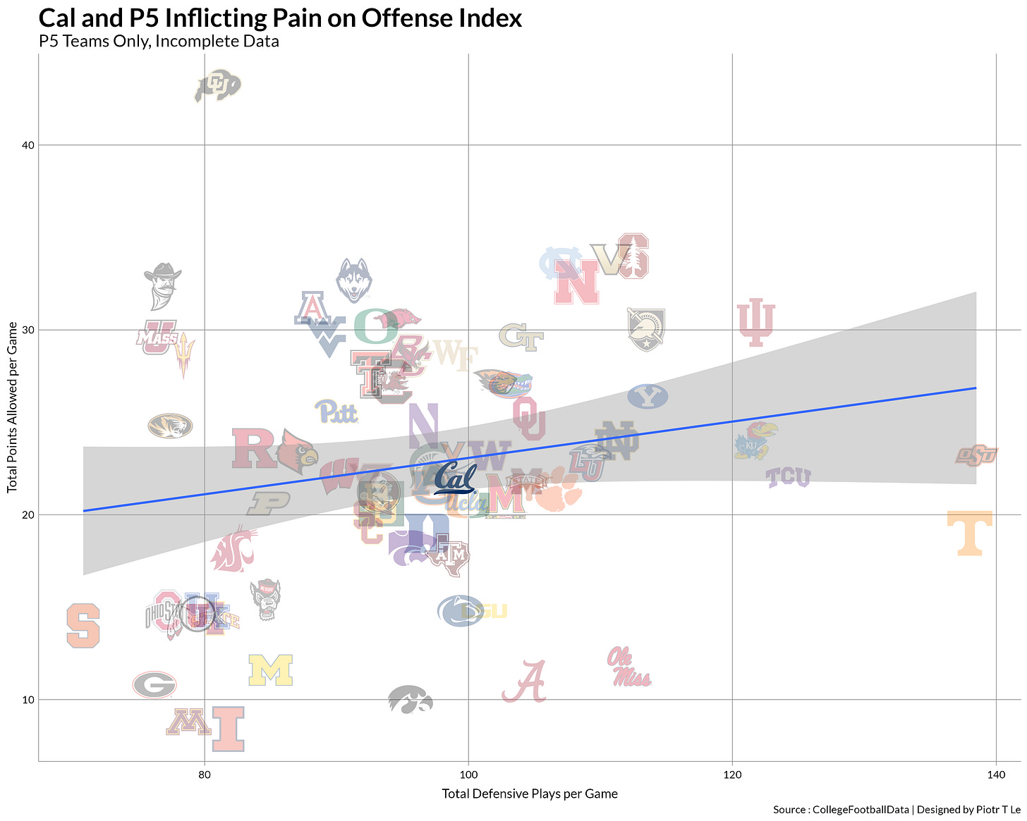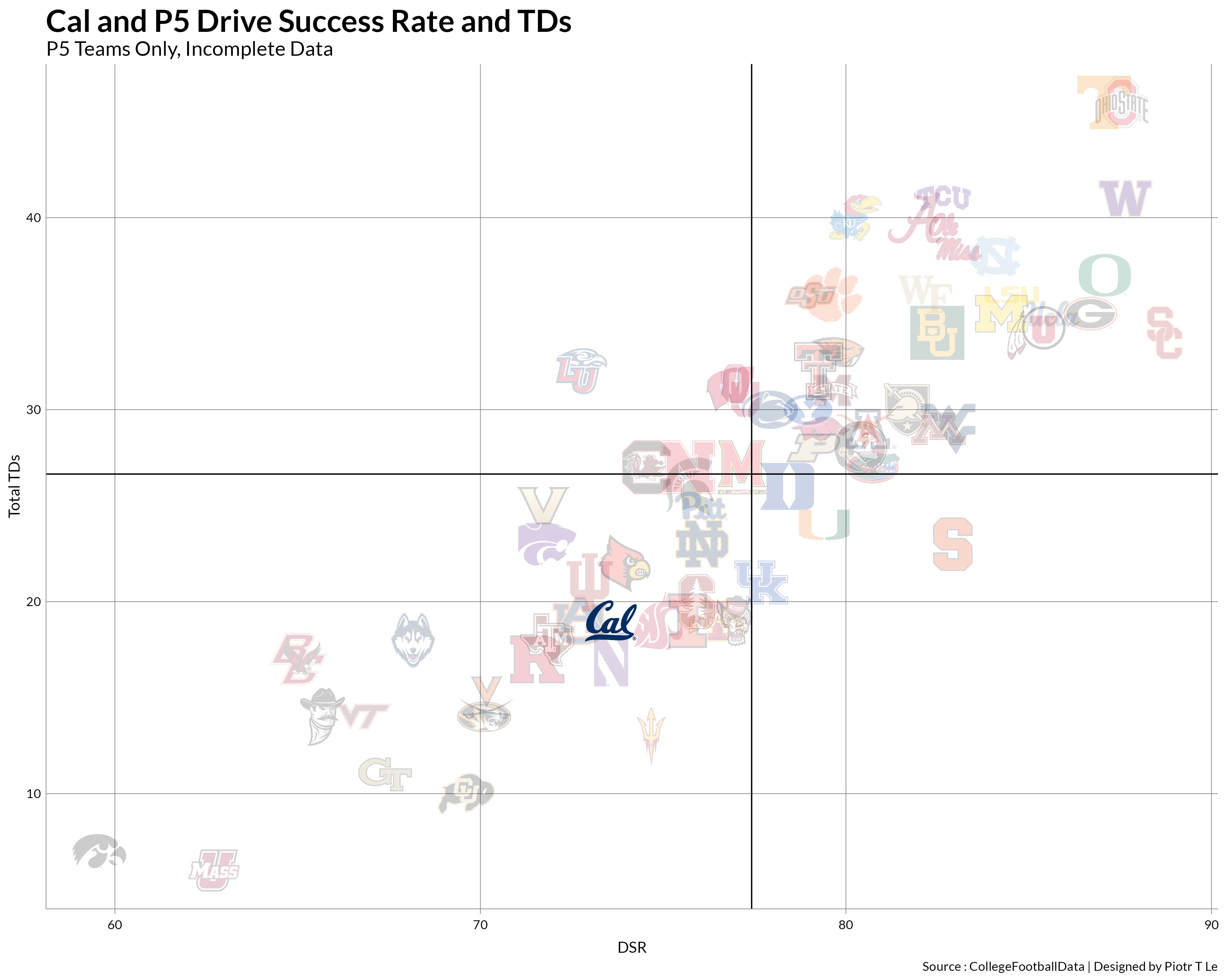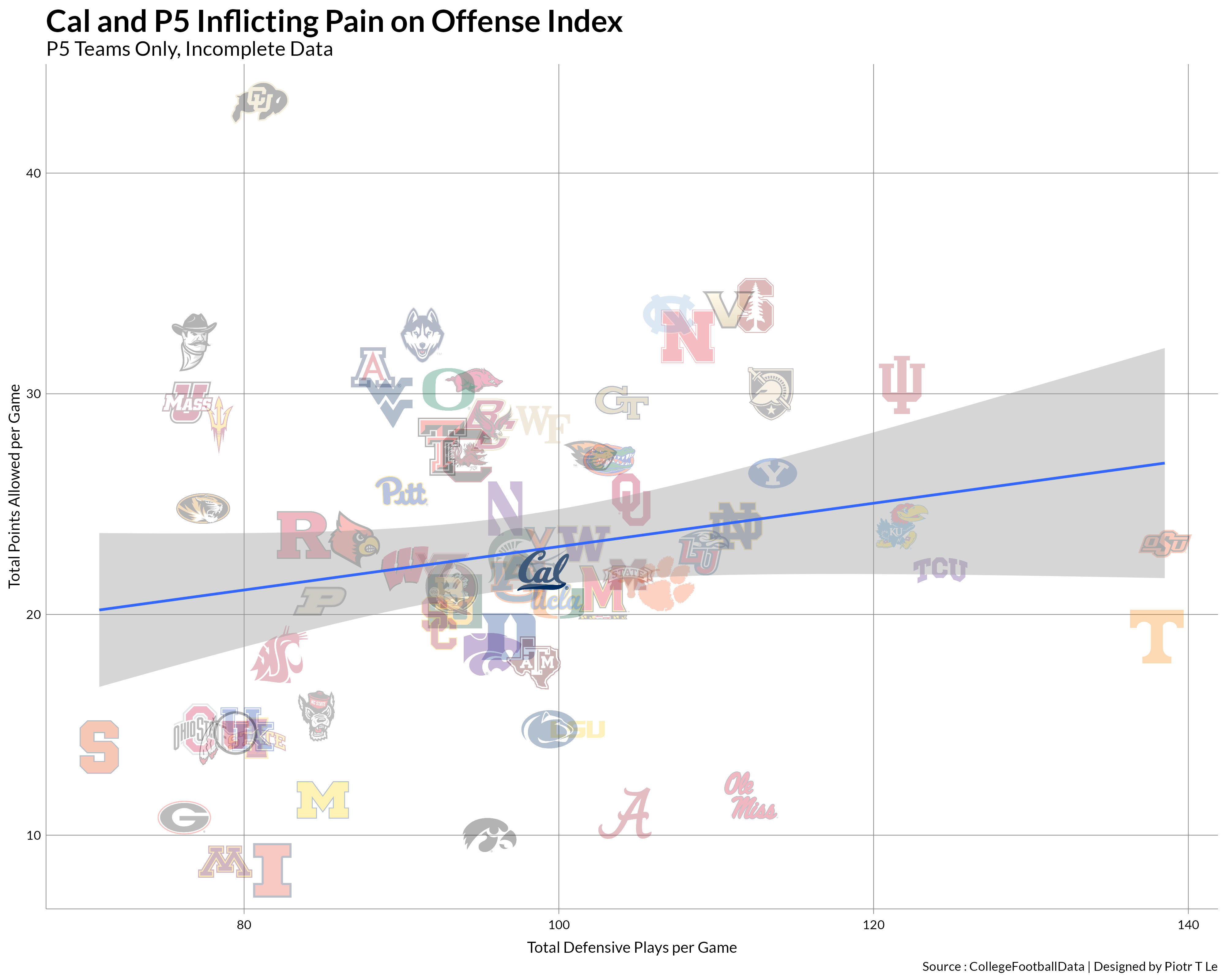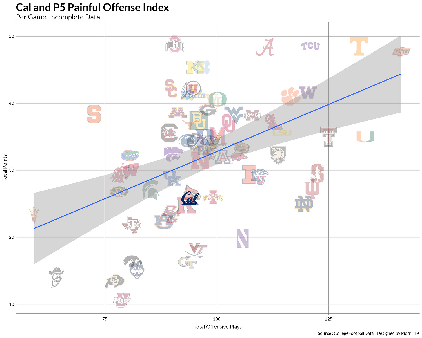 The Meaning of Cal football is mired in the muck of mediocrity. We’re just above average on offense, and comfortable below average on offense. However, the differential between where Cal is and where it needs to be in order to support this offense is the gap between Cal and Illinois which would demand our defense to halve it’s allowed points per play efficiency.