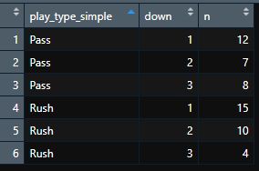 Looking at the FBS non-Cal gains by play call and down we can see the Oregon State offense relying on the run to set up short 2nd and 3rd downs.