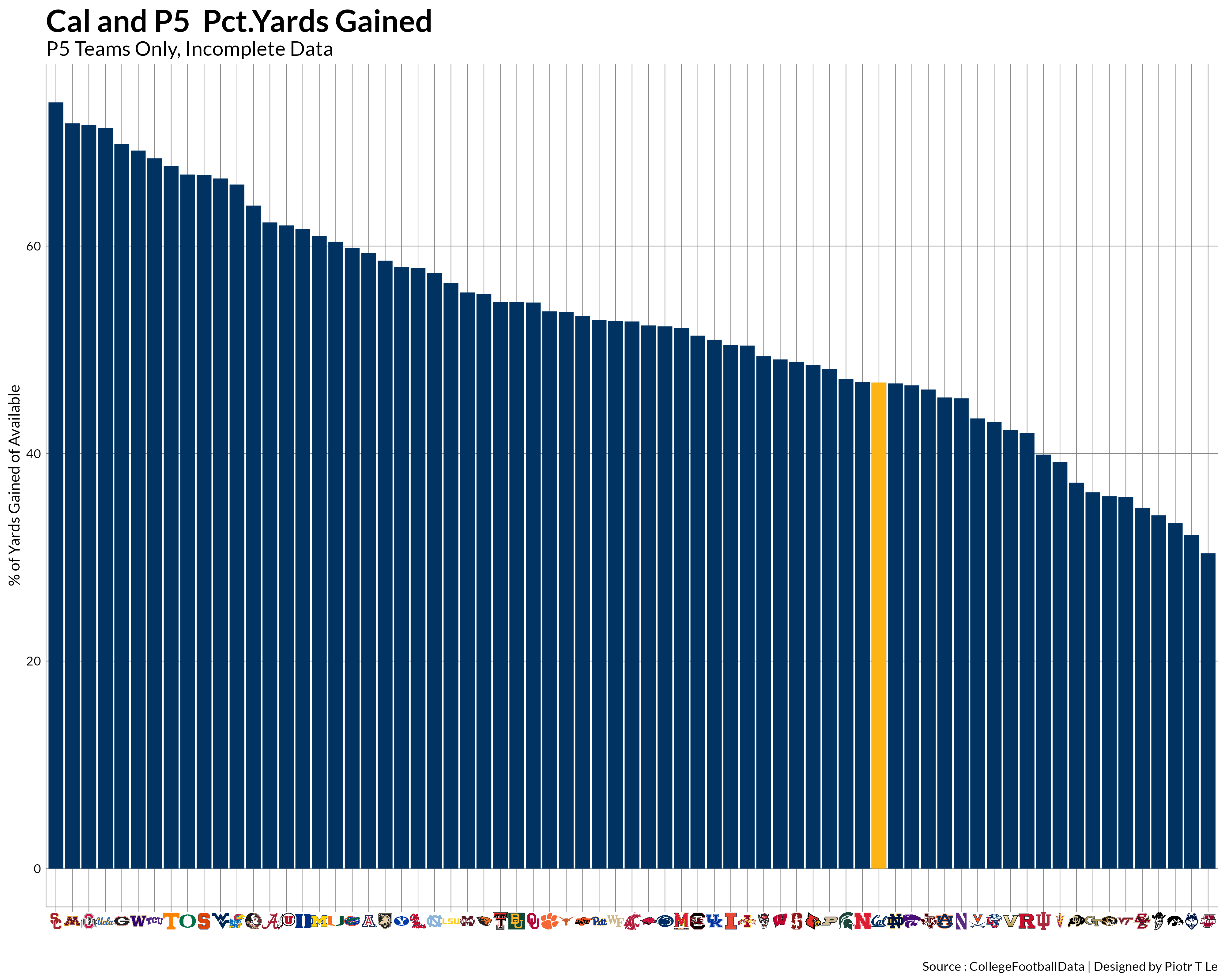 A big number that declined for Cal is the decrease in the pct. of Yards gained over available. We have fallen below the 50% mark, this re-emphasizes the offense’s issues with getting out of 3 and out situations.