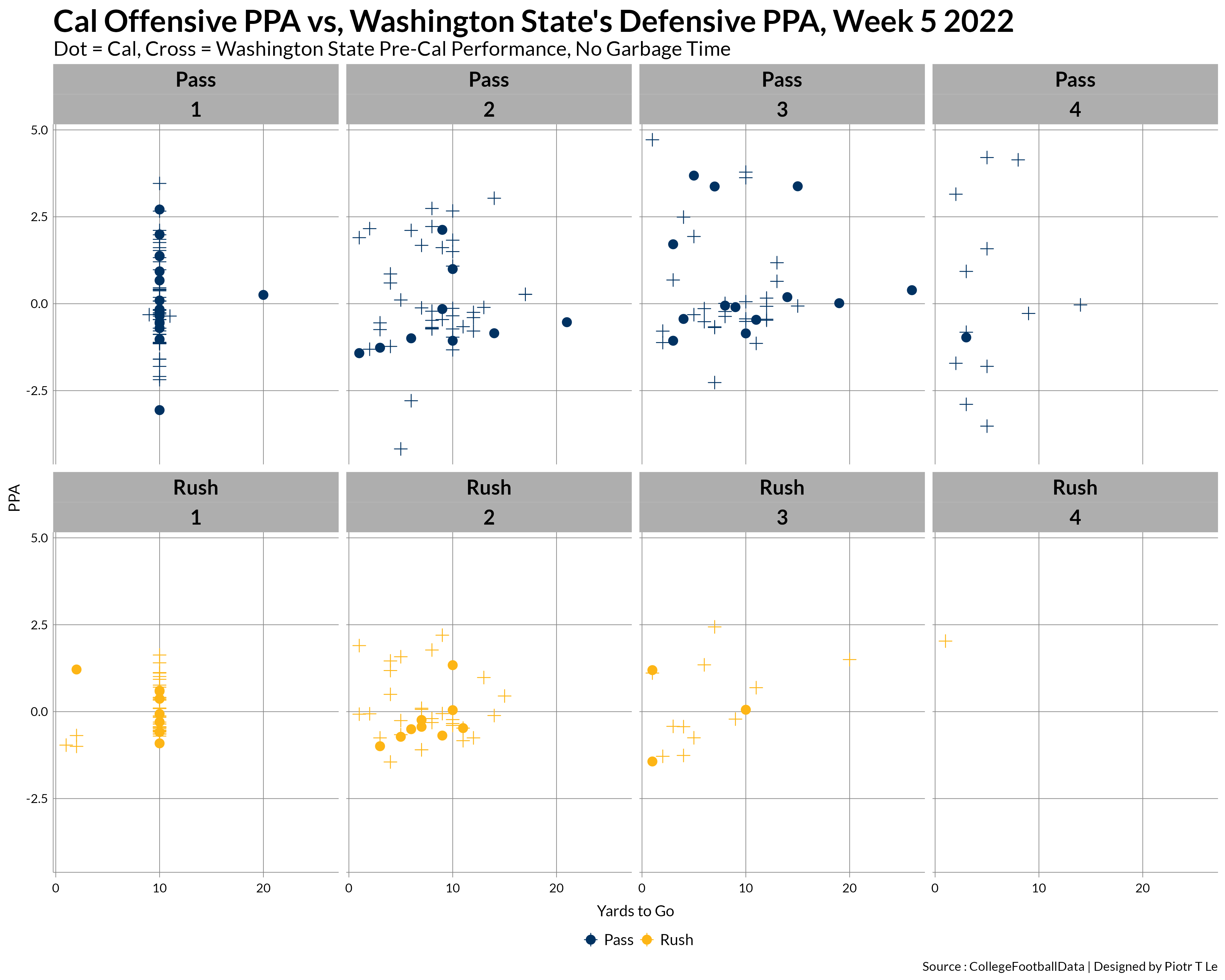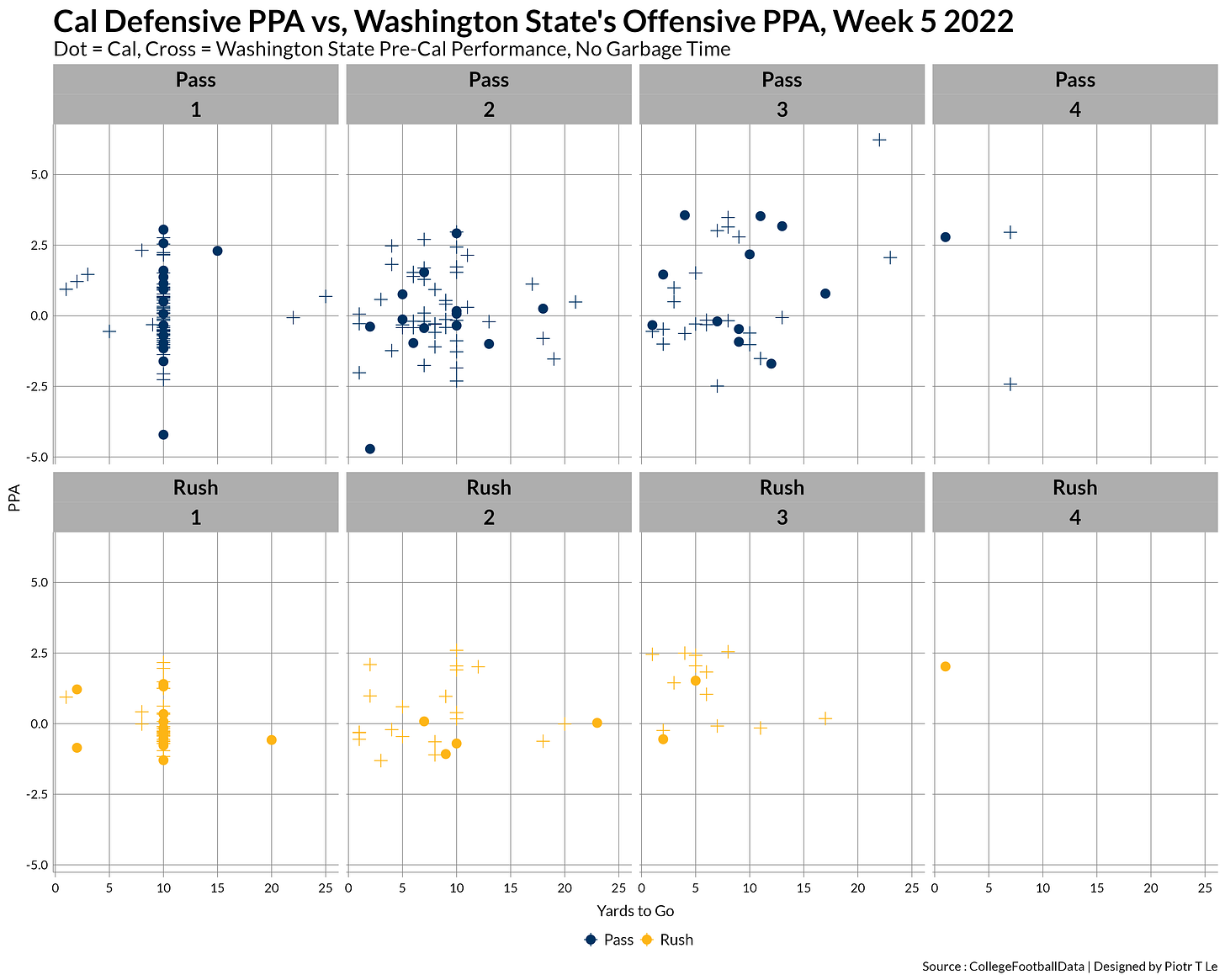 Cal really didn’t do well on 3rd down defense against the pass and it shows with several >1 PPA plays Wazzu was able to get on those downs.