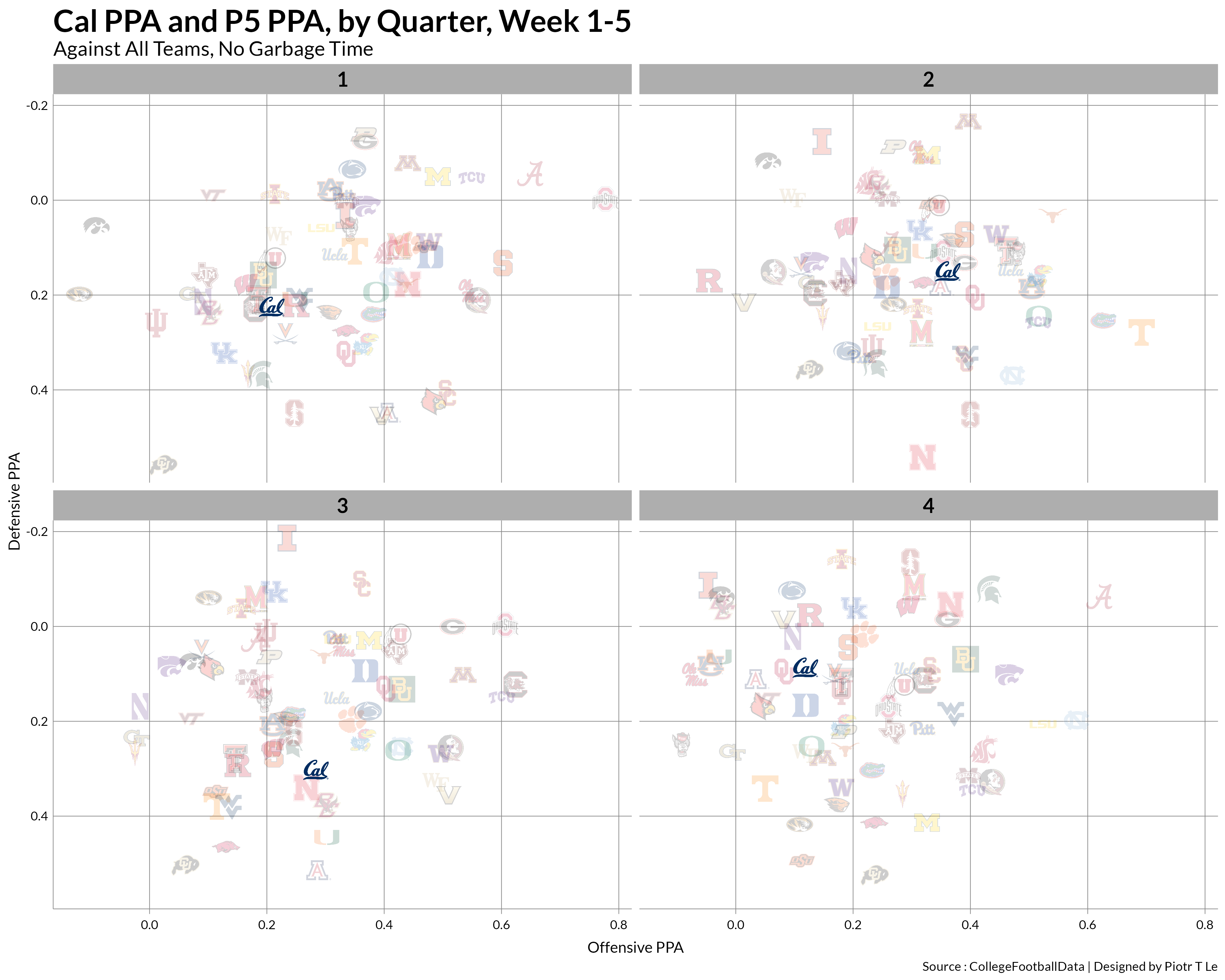 We can see here that Cal continues to struggle on defense in Q3 with both offense and defense taking a step back in Q4. Note where Colorado is at and how poorly they have played in the first 1/3rd of the season.