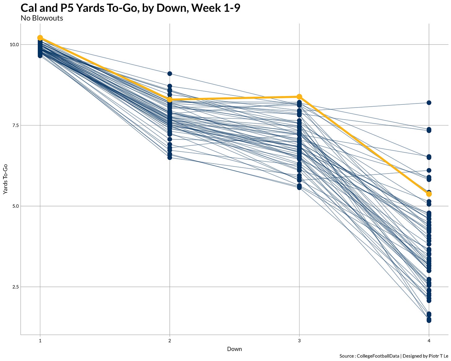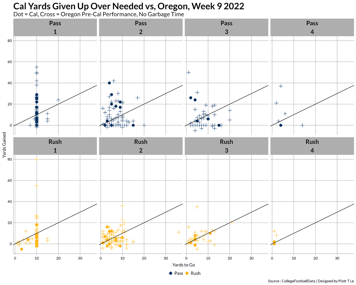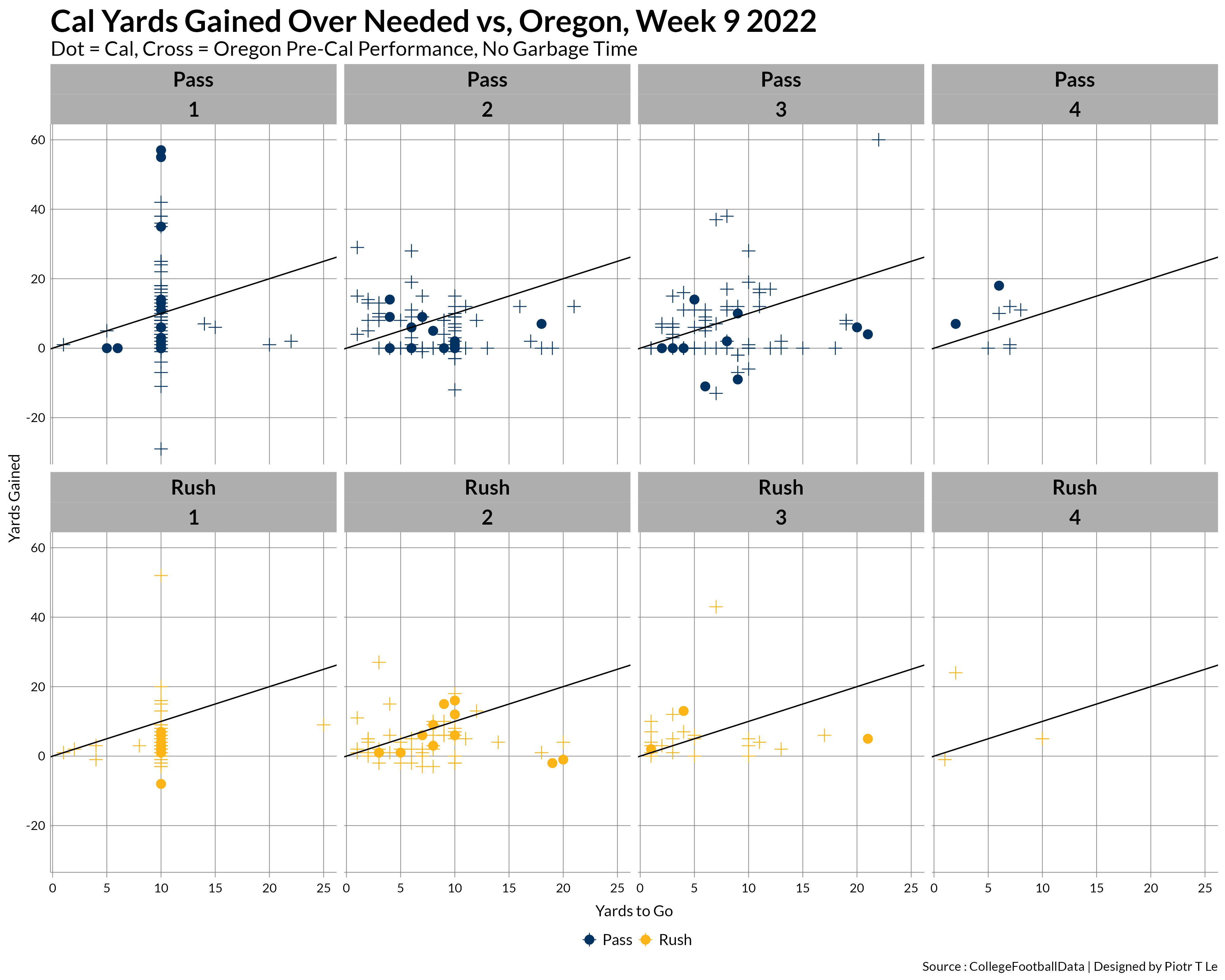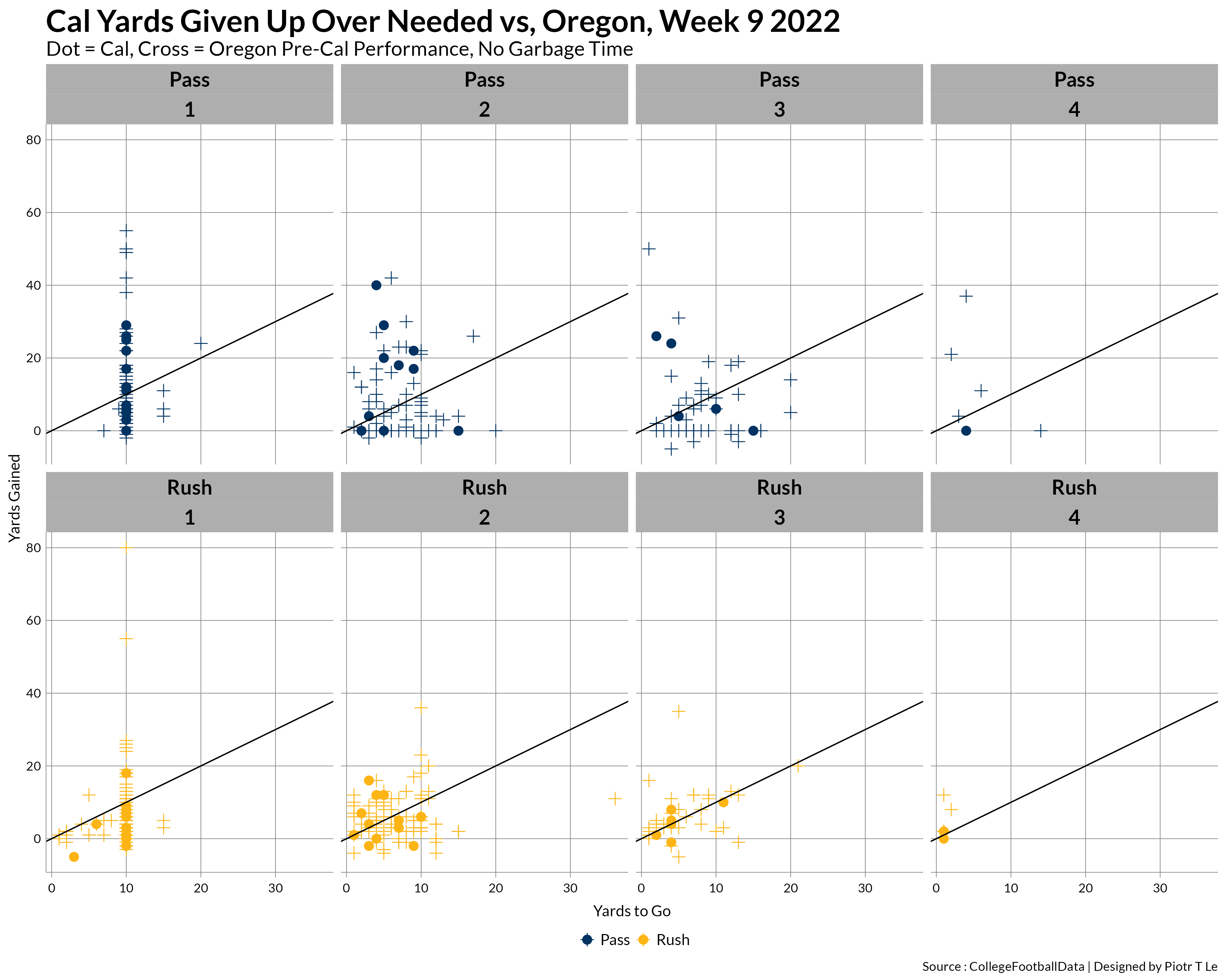 Here we can see the painful Cal offense, especially on 1st down rushing were we’d oscillate around the 0 mark with the passing game faltering on 3rd downs and being just meh on 2nd.