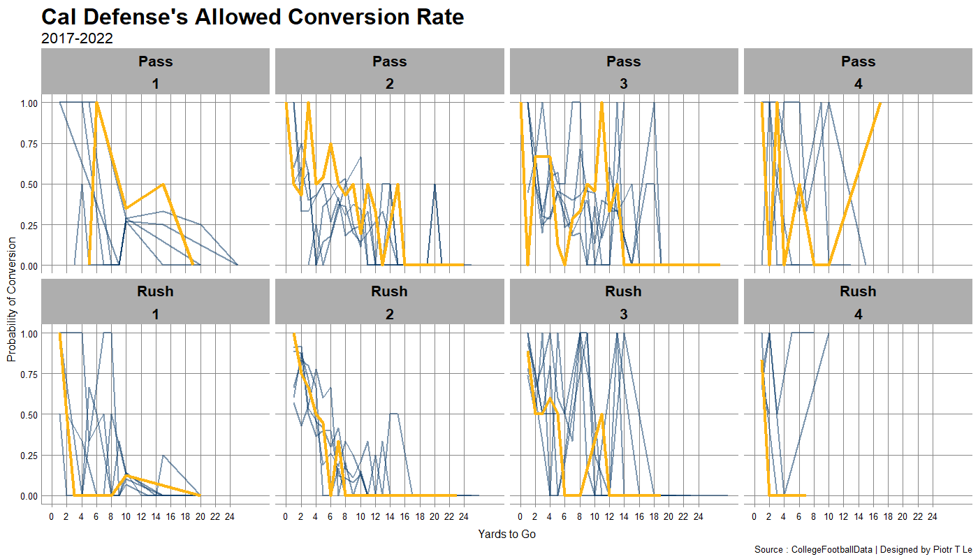 The Cal defense of 2022 feels worse as well due to the fact that we’re allowing high level of 2nd down passing plays to convert 1st downs. With damn near half of 2nd and 4-8 being converted for first downs with 3rd and long being convertable in higher rates than in the past.