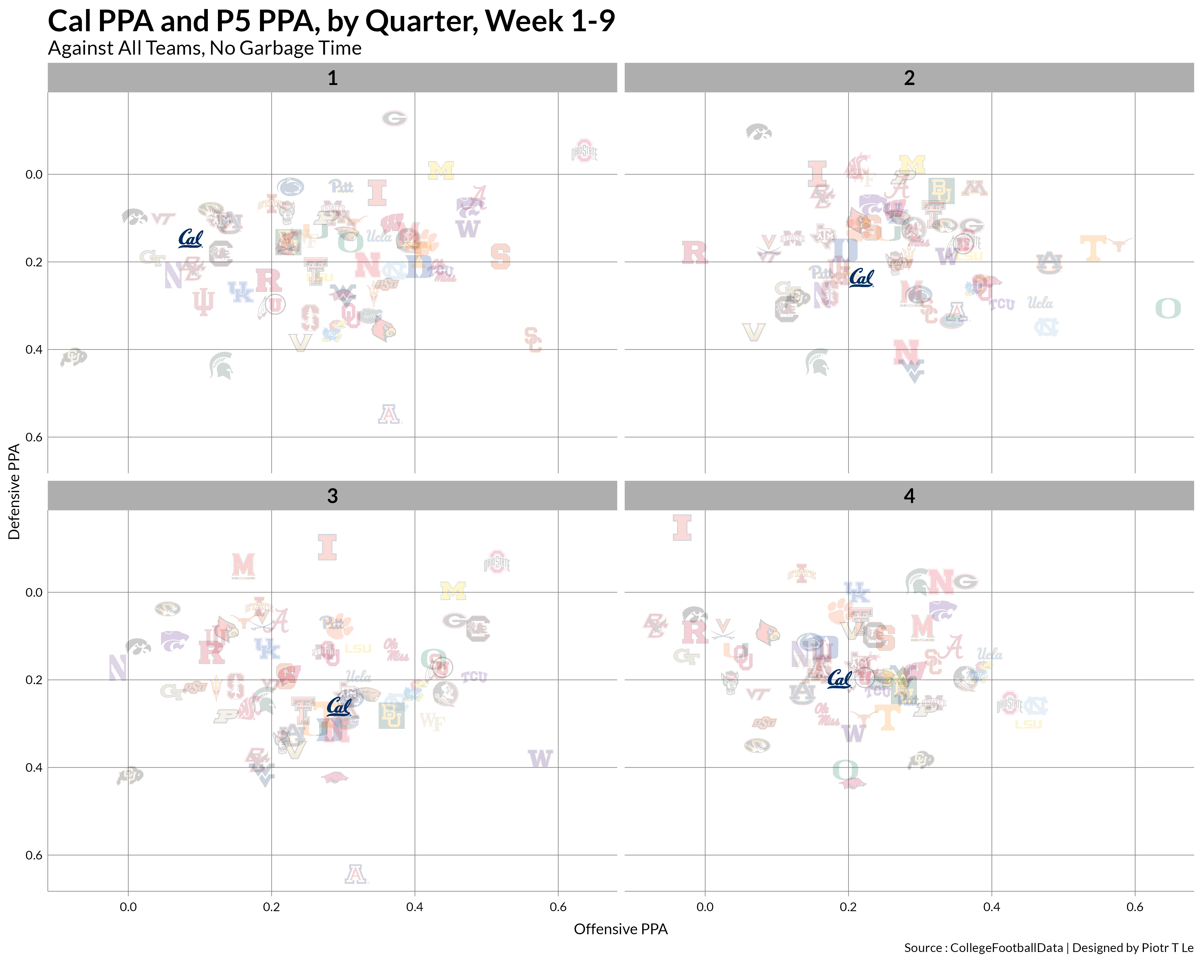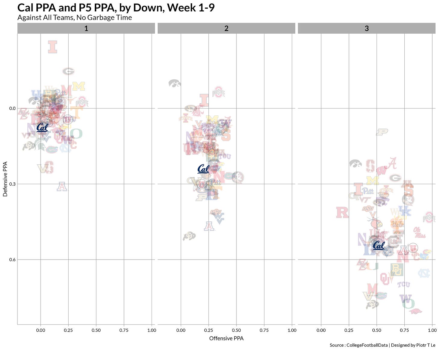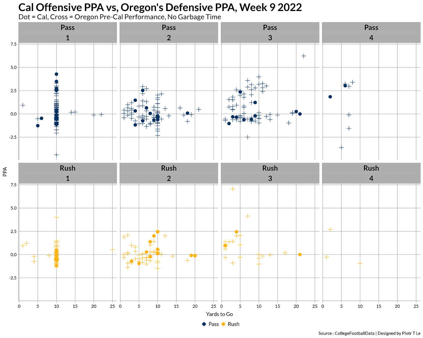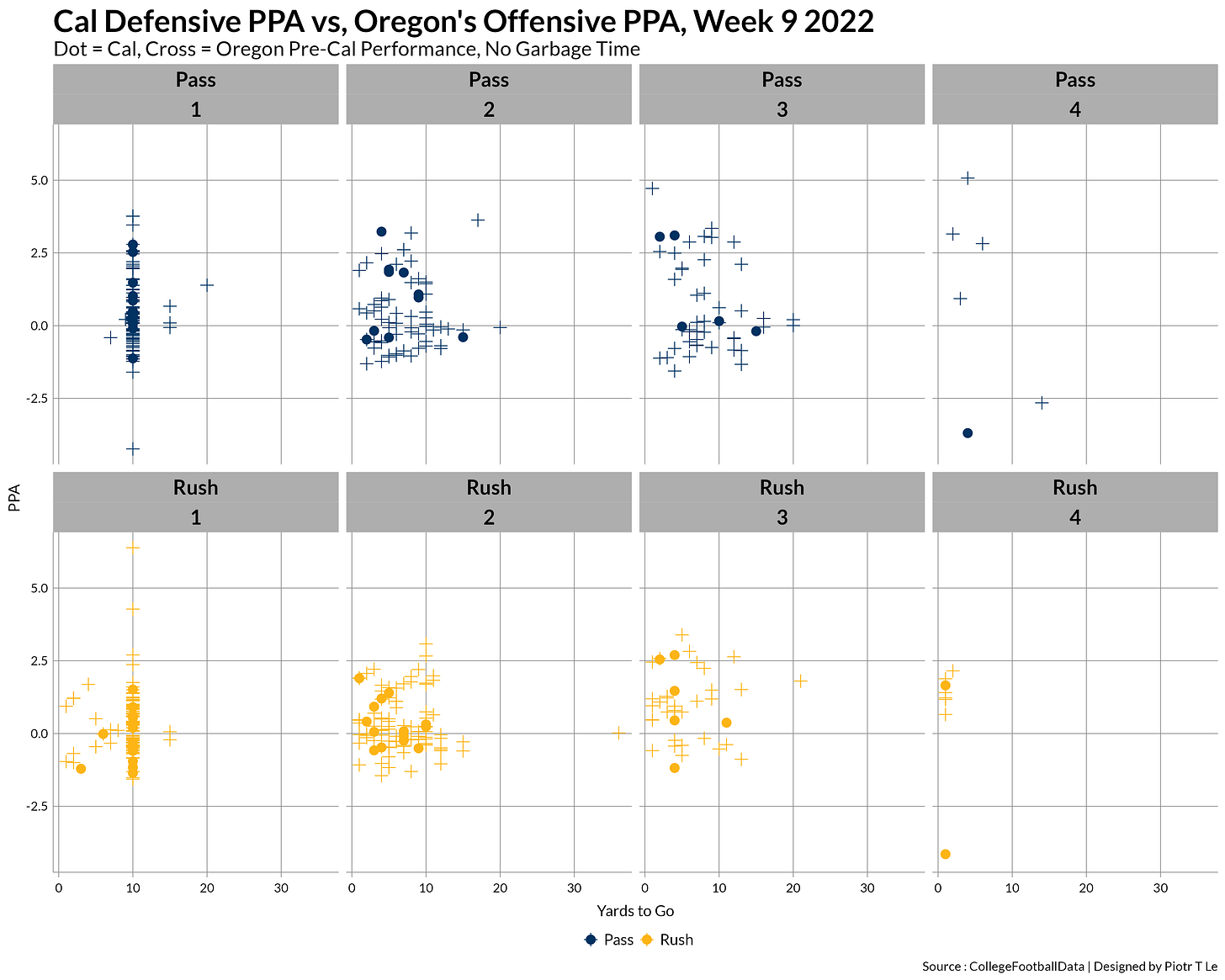 EPA/PPA data confirm the purgatory the Cal defense was during the game, not really affecting Oregon’s general performance sans the 2 4th down stops.