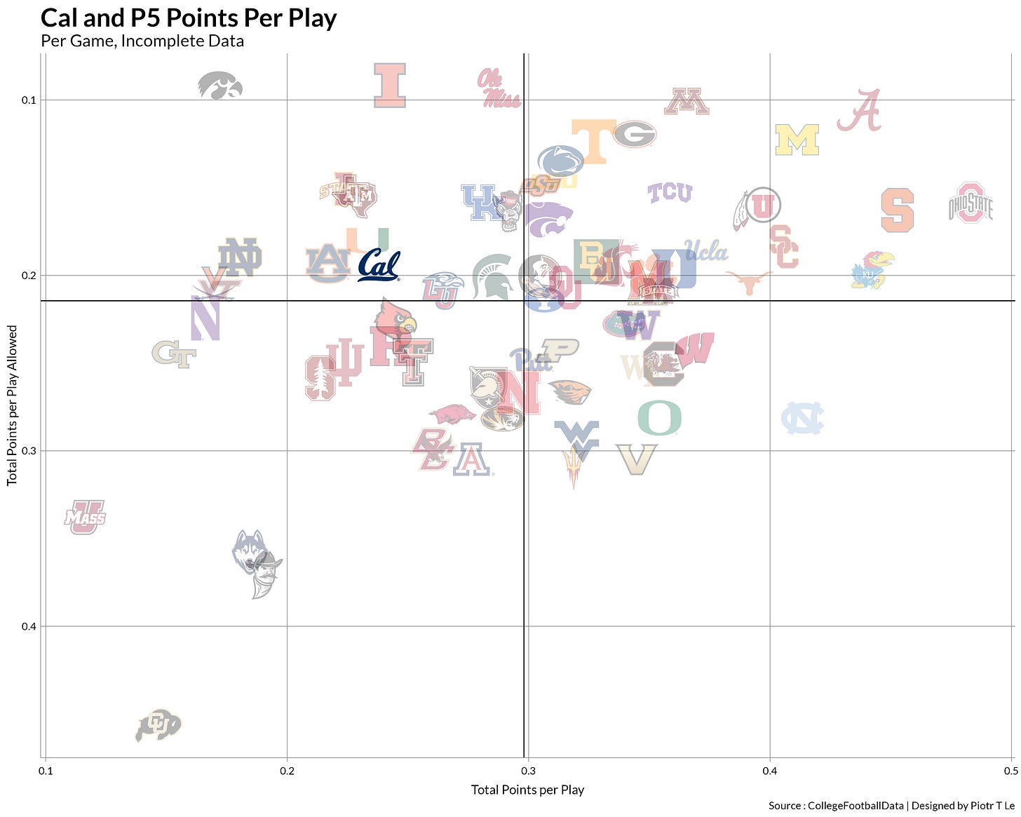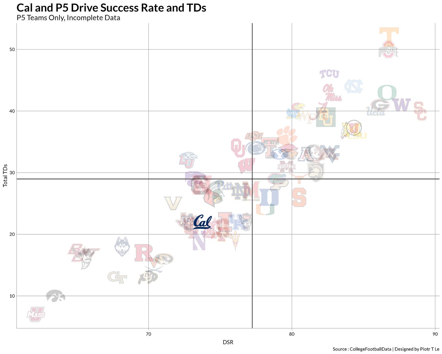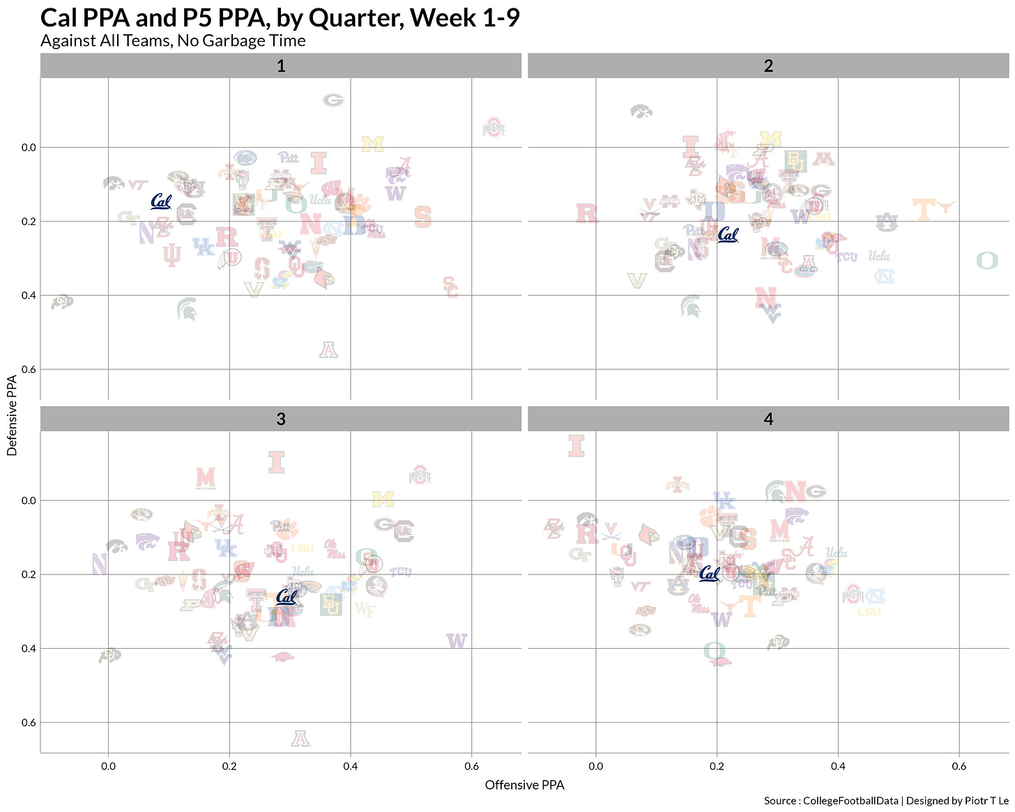 This is where the tragedy of that friend comes into play, the fact that the offense just refuses to be above the level of serviceable early in the game is the achilles heel of the team. Being 6th is great when it is the # of Nobel prizes by a university in the world but it is terrible when it comes to the fact that we’re 6th worst offense in Q1 of a game. This puts the defense in unfavorable game scripts where the opposing offense has their entire game plan open for them while the slow start limits the Cal playbook late in the game.