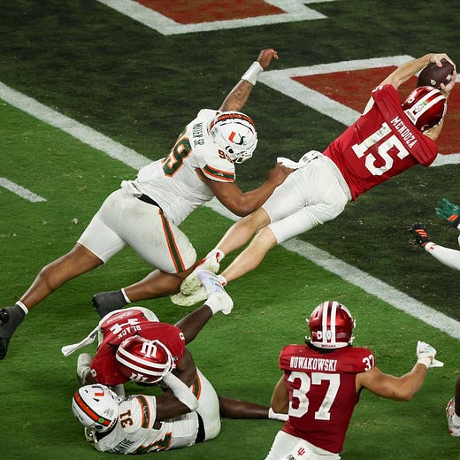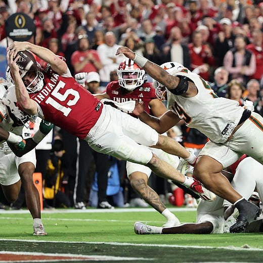 Indiana didn’t need stars and recruiting pipelines and years of tradition to build toward this moment. They plucked top performers from a top G5 program, grabbed hard-nosed talents from across the college football landscape, and built a playoff contender in a year. They then got the talented quarterback they needed (along with additional skill players) they needed to finish the job.