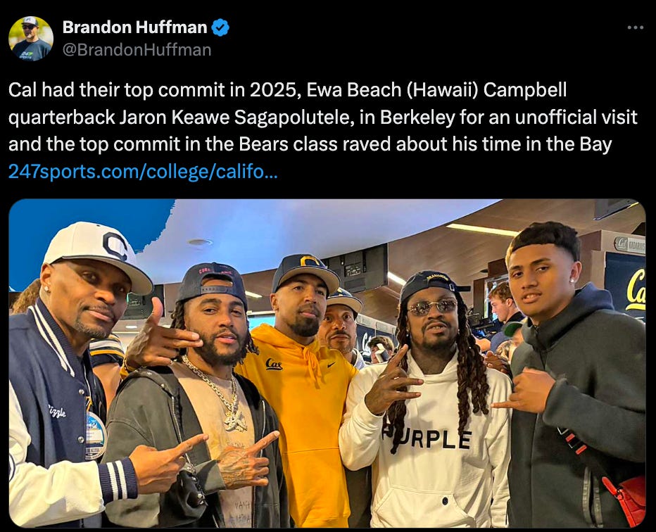 Sagapolutele made his final visit to Berkeley for the Big Game ($), and had a great time meeting Cal luminaries like Aaron Rodgers, Marshawn Lynch and Desean Jackson. Unfortunately it was hard to meet the allure of the history of Hawaii QBs with the Oregon Ducks.