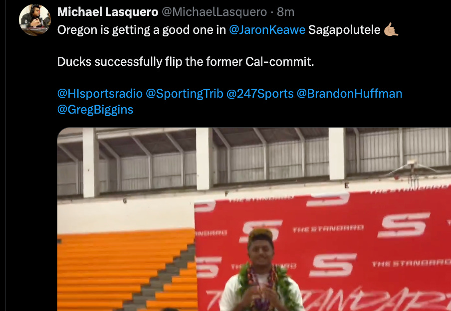 In an early Signing Day decision, after being committed from Cal, Jaron Keawe Sagapolutele flipped to the Oregon Ducks. It’s another bitter last minute blow for Justin Wilcox, who will now have to turn their attention to keeping Fernando Mendoza at all costs.