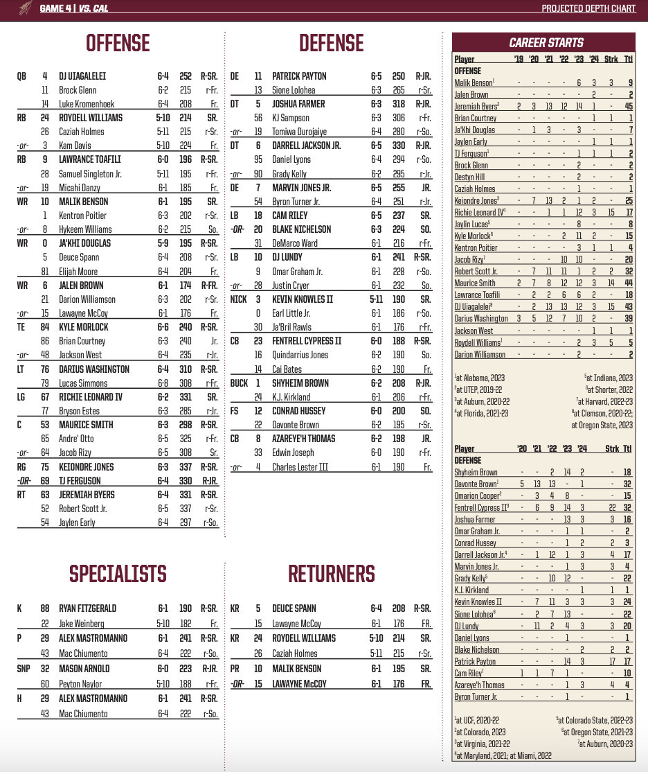 The other players to watch, are Manteca’s own ILB Blake Nichelson and S Shyheim Brown. Nichelson is primed for a bigger role with Cam Riley’s injury and DJ Lundy’s inconsistent play, working with Justin Cryer in trying to patch together the FSU defense. He has solid instincts at the linebacker spot, but there have been several mentions of the defense playing disconnected, which puts their responsibilities in a bind.