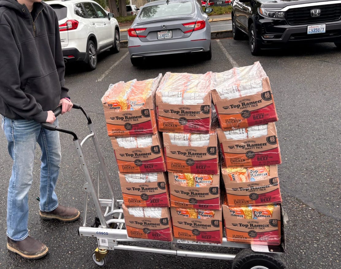 I have spent most of your donations to get to this point in the bracket, buying up high needs foodstuffs in large quantities to give to our local food pantries here in Puyallup, Washington. Just this morning, I raided Grocery Outlet, but I’ve also made multiple trips to Costco: