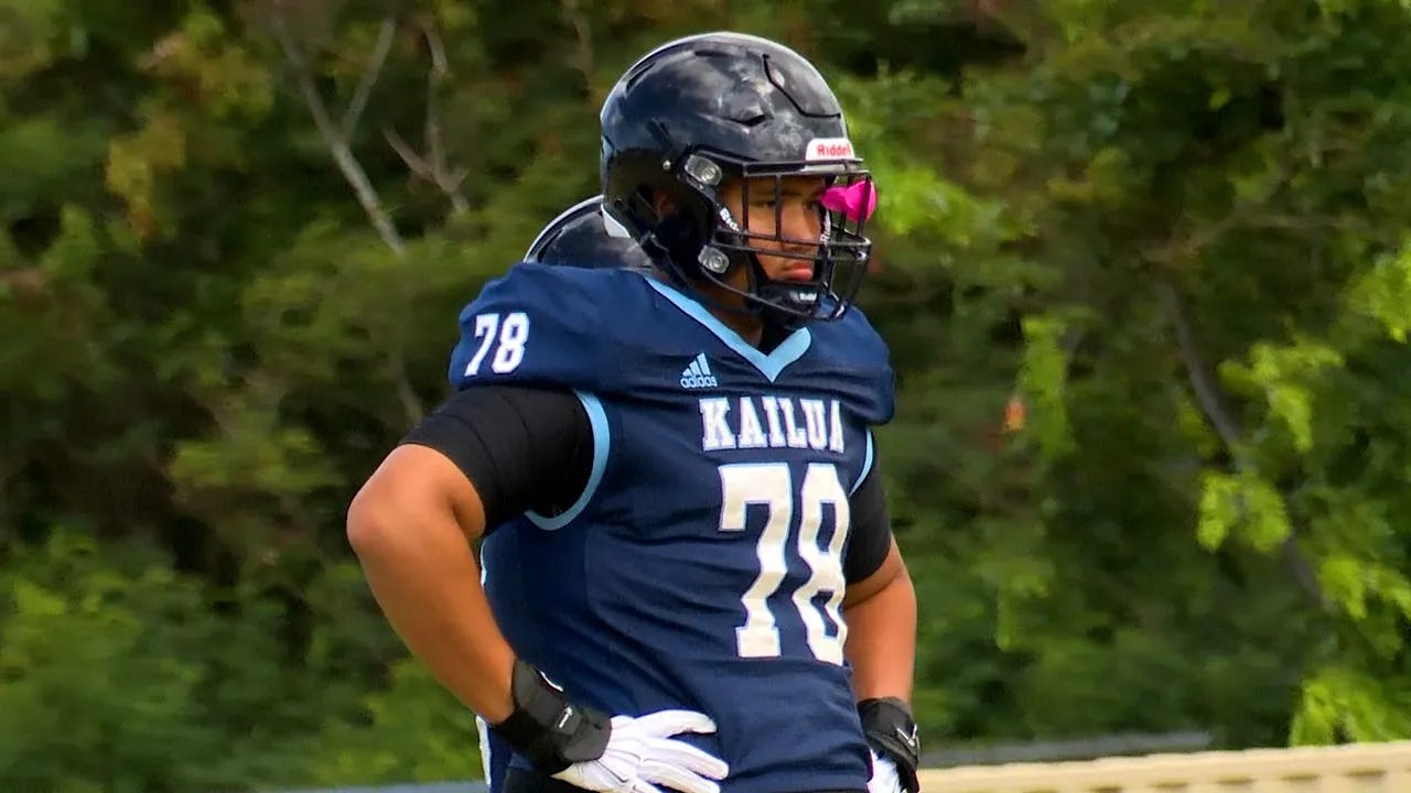 Esaiah Wong - OT - 3/5-Star (87 OVR) - Kailua (Kailua, HI) – The Surfriders rode the waves to victory over the Waipahu Marauders behind a sturdy offensive line, anchored by senior OT Esaiah Wong who helped generate 219 passing yards for 2 TDs and 1 INT, as well as produce 236 rushing yards for 1 TD in a 41-27 win to improve to 8-3 on the season.