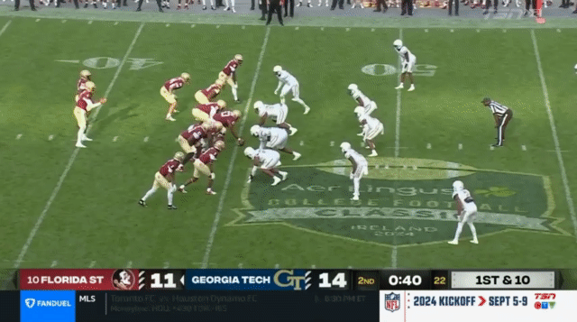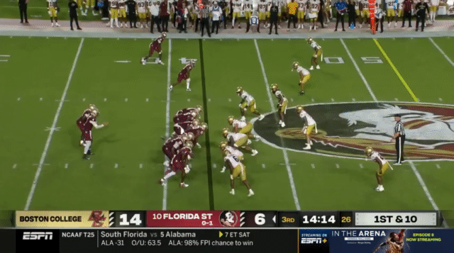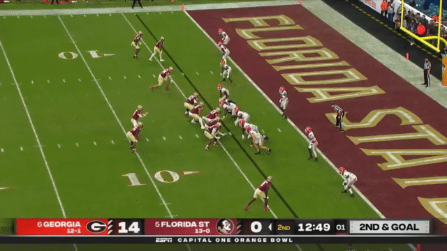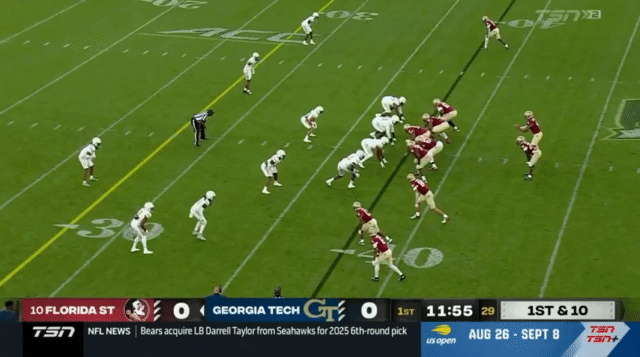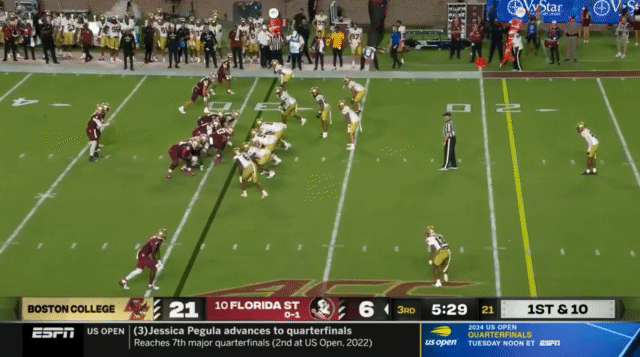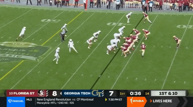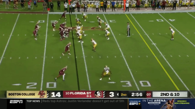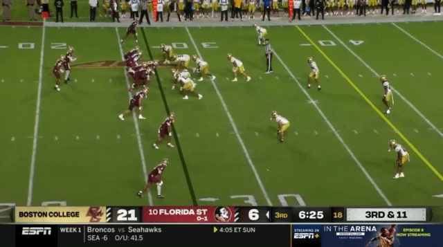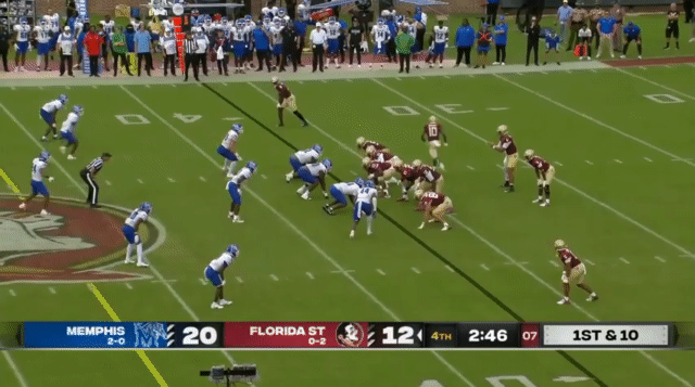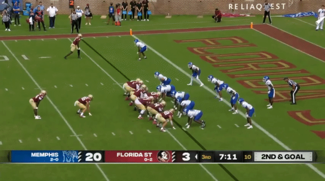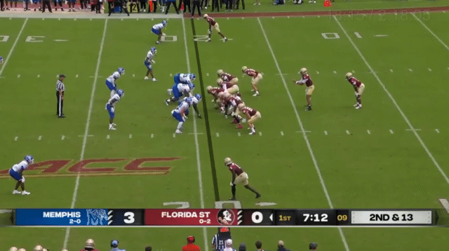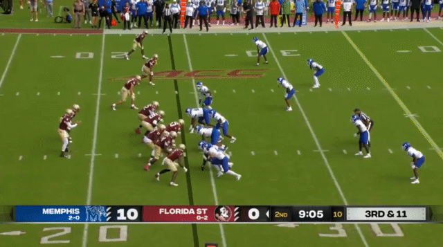 One thing worth mentioning is the positional versatility of the running back group. FSU will often line up with 2 RBs in the backfield (21-personnel, i.e. 2 RBs, 1 TE), and you have e.g. a competent slot receiver in Lawrance Toafili in the backfield, or a former high school quarterback in Kam Davis, or even a former running back like Ja’Khi Douglas in the slot receiver position. FSU has these players who can fulfill multiple roles, and they’ll use motion to swap them around (1 RB in the traditional RB role, another RB running a route as a receiver, a receiver motioning into the backfield, etc), but they haven’t really done all too much with that so far this year. I have to imagine there is a good reason that they like running 21-personnel so often, so I imagine some creative plays from the RB position are coming. I just haven’t seen many yet.