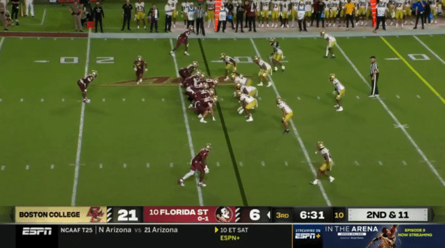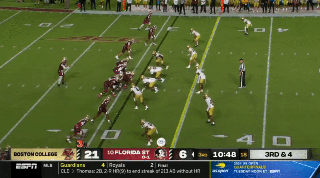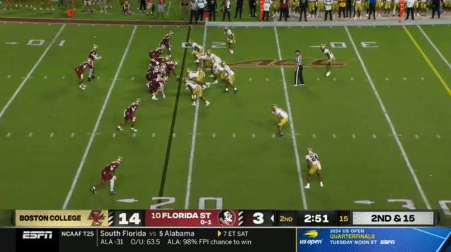 Notice how all these plays are on 2nd and long or 3rd downs? FSU’s run offense fails them on early downs and puts them behind the 8-ball on later downs, and in obvious passing situations, the passing offense also fails them. The result is one of the worst offenses in the entire FBS. While some people are quick to heap blame on the quarterback, football is a team sport, and this is why I think FSU’s offensive struggles can’t be fixed by merely replacing the quarterback. The backup quarterback is the most popular player on a losing team, but I watched their backup quarterback too, and I can safely say that Uiagalelei gives them their best shot of winning. Playing the backup quarterback would be capitulating on the season.