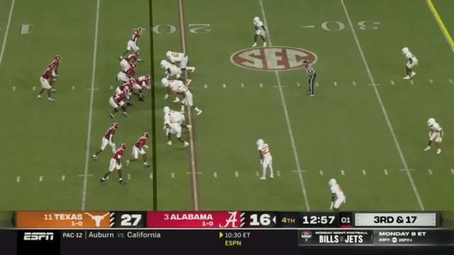 Of course, as a freshman, he still has work to develop his reads (although this is clearly excessive by his receiver here):