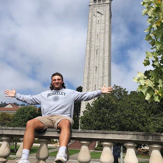 Looks like he won’t be so lonely anymore with Schlegel joining the team. Schlegel played in all 13 of Kentucky’s games last year, “mainly in a special teams role”; he has one career reception (against Florida last year, for 12 yards) and returned two kicks last year. As a member of the SEC Fall Honor Roll in 2017–2019 and a member of Kentucky’s Dean’s List in the Spring of 2017, hopefully he will be well-equipped to handle the rigors of UC Berkeley. He’s not exactly a stranger to the West Coast as he grew up in Colorado and he has a sweet, sweet mullet.
