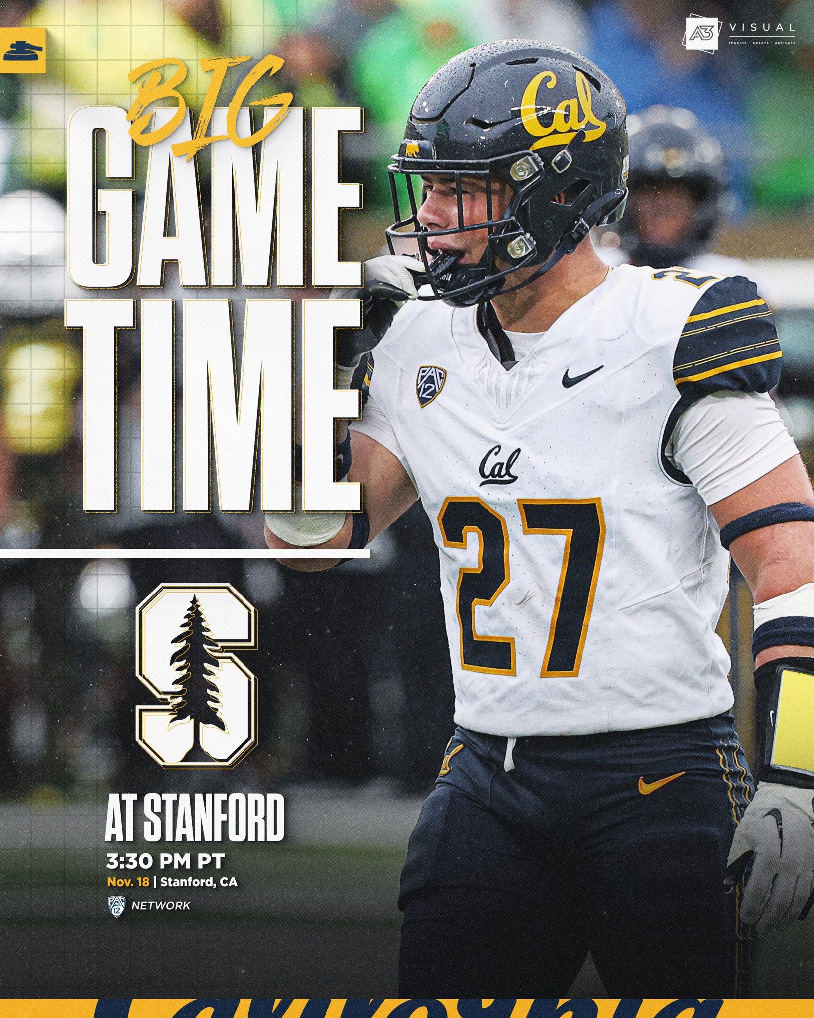 The final game in the Bay Area for the 2023 season finally has a kickoff time. In the 126th Edition of the Big Game from Palo Alto, Cal and Stanford will start at 3:30pm, and be broadcasted on the Pac 12 Network.